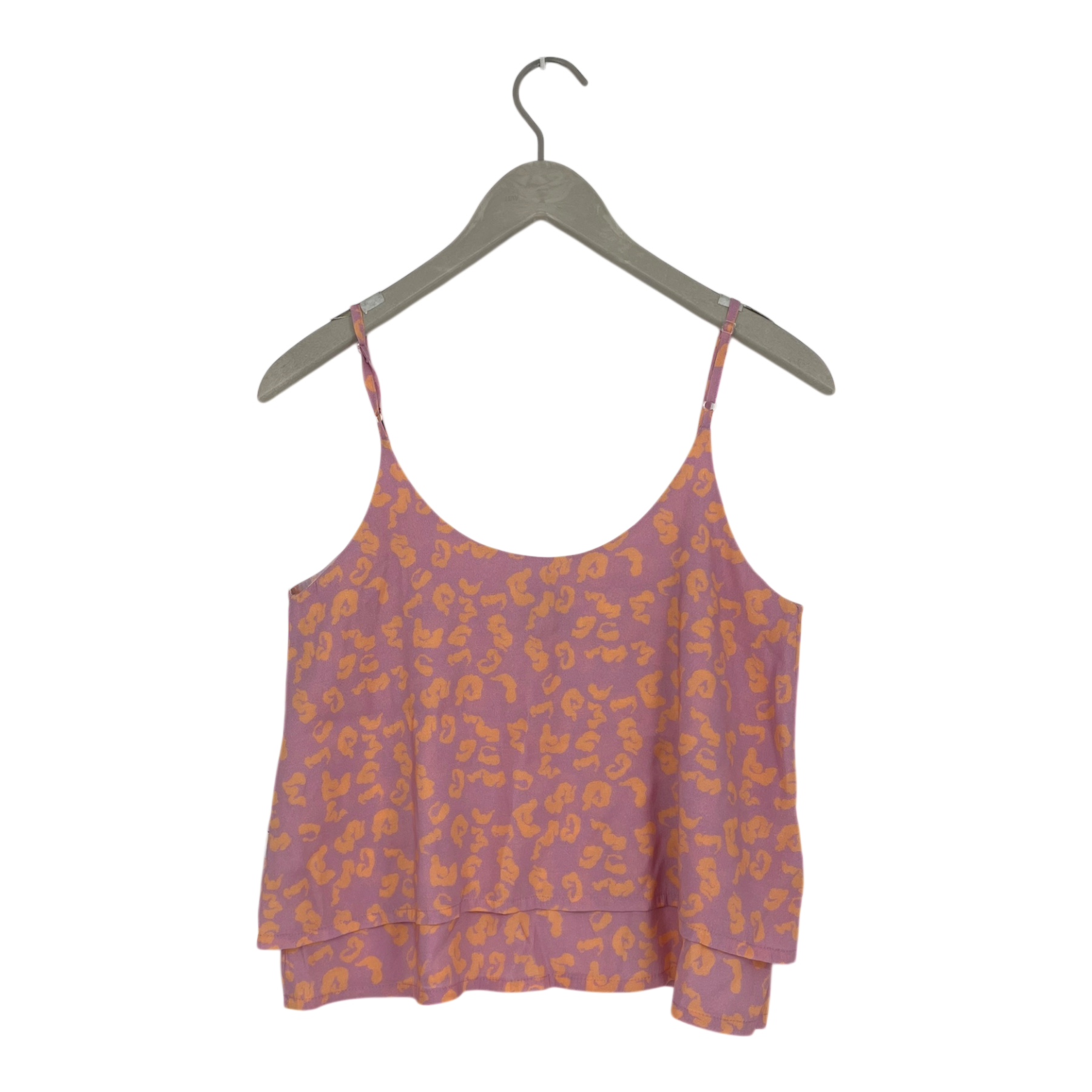 Makia tiered top with thin straps in a leopard print.