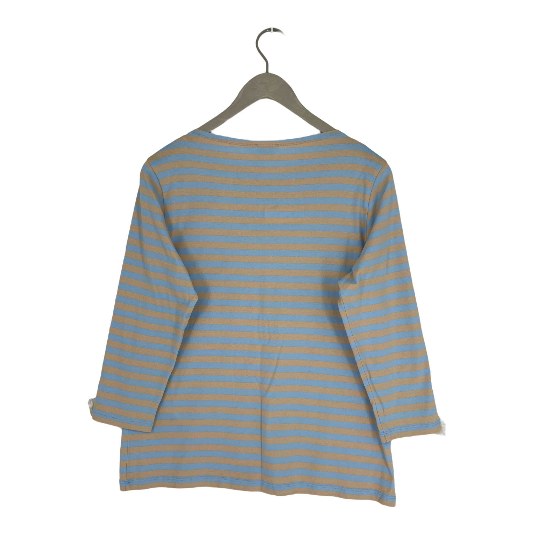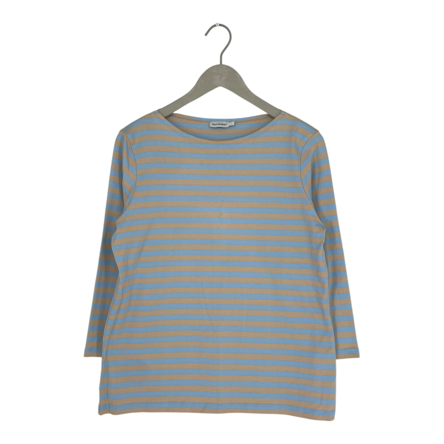 Marimekko Ilma long sleeve shirt in blue and vanilla colored tasaraita print.