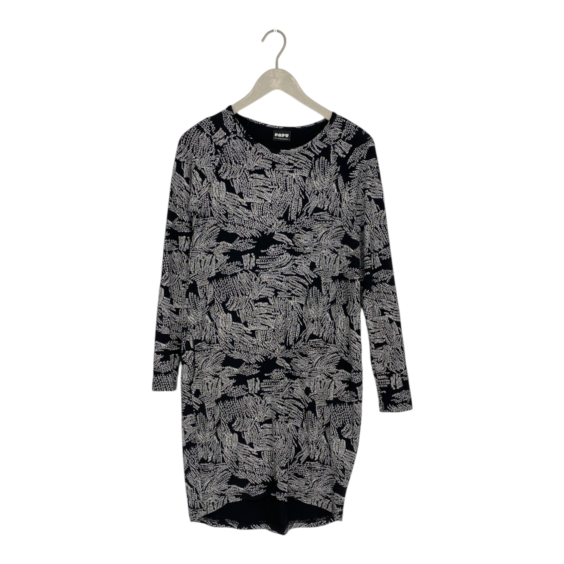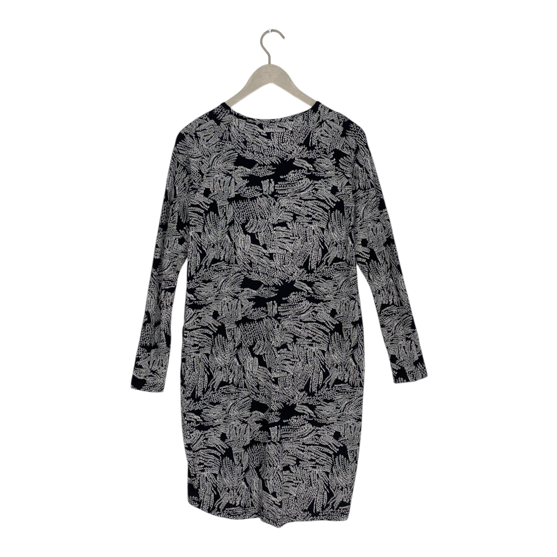 Marimekko Peretta tunic in Vatanuotta print with has a slightly widening A-line cut, 3/4 sleeves, side pockets, and a oval neckline.