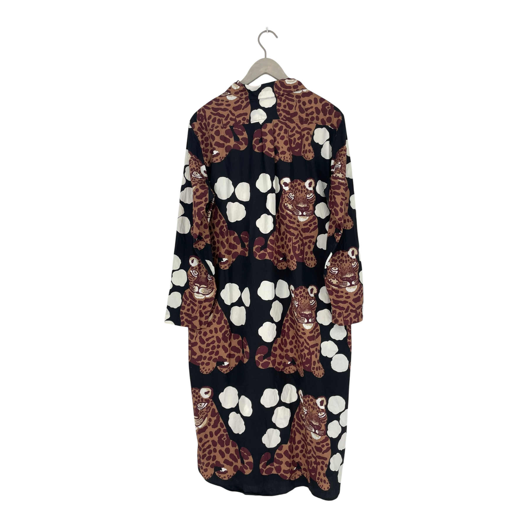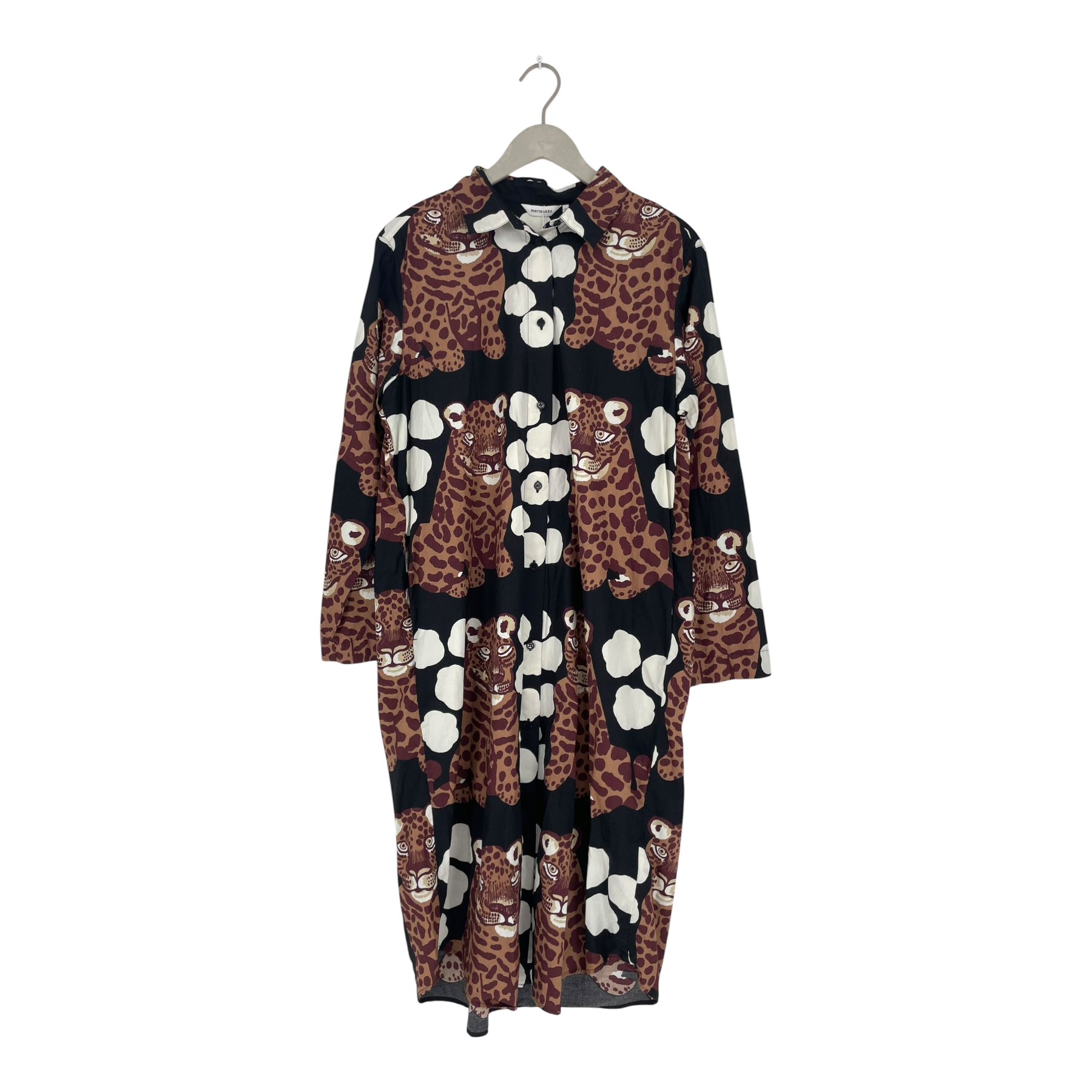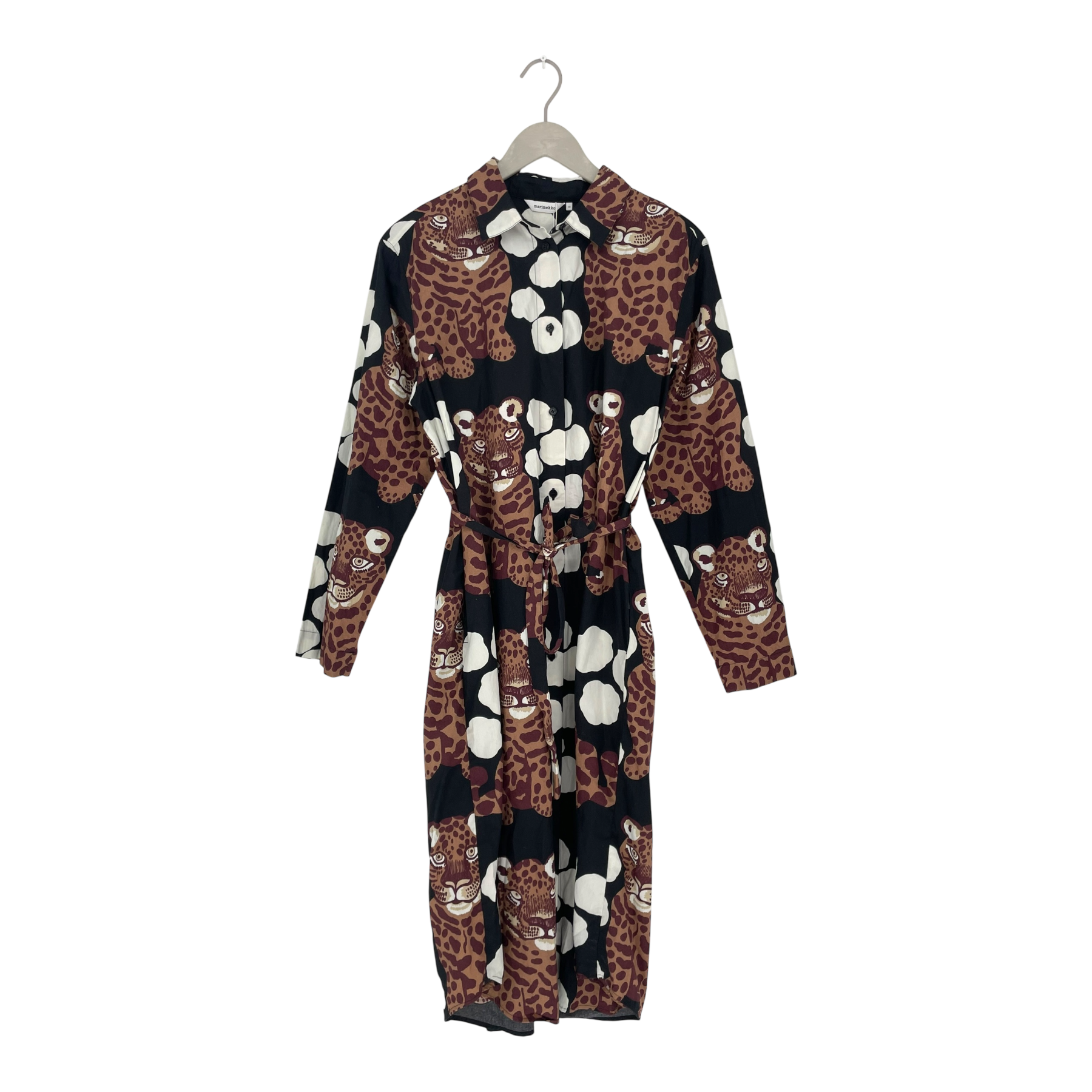 Marimekko Viivain button up dress with side seam pockets and fabric belt in the Kaksoset print. Spare button included in the laundry tag.