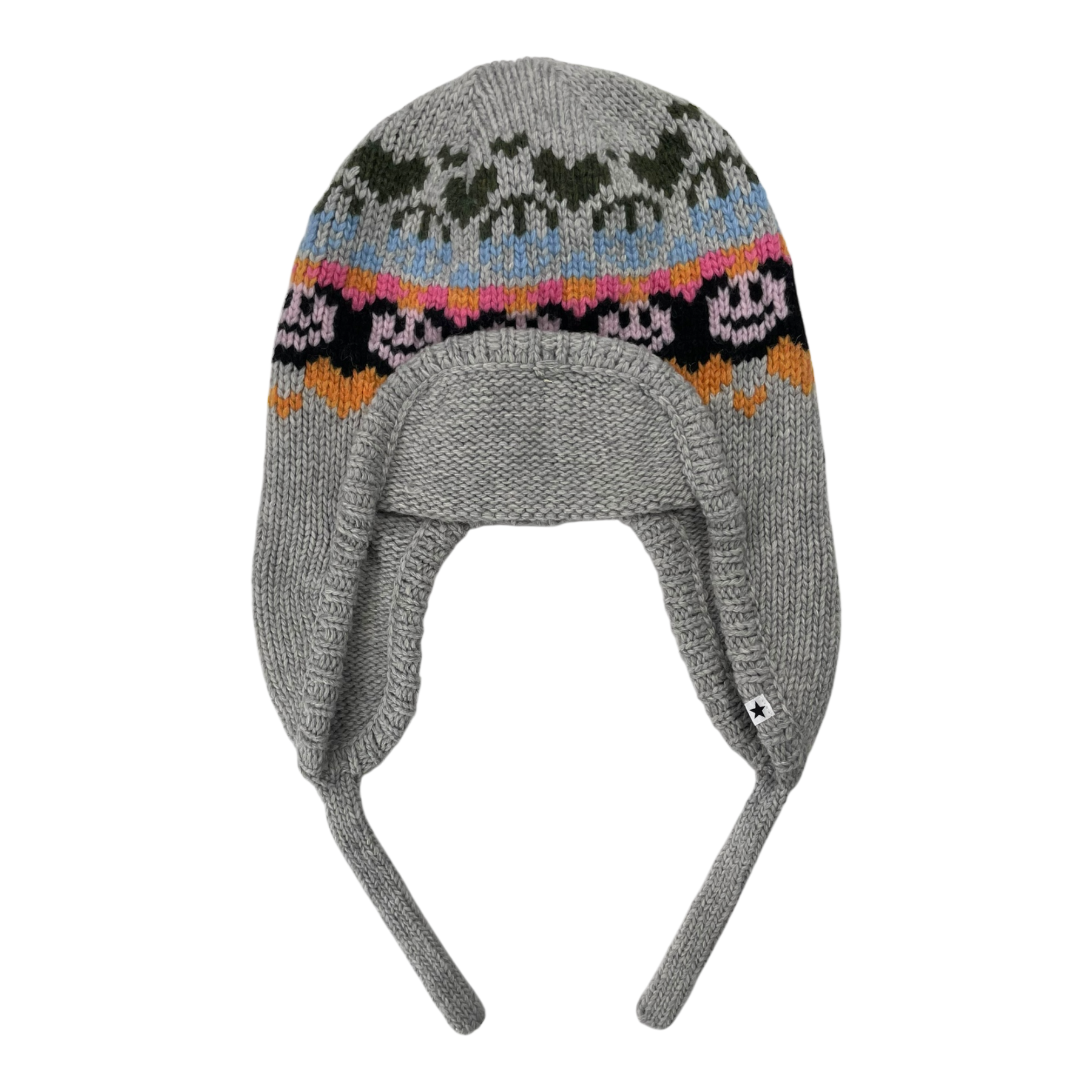 Molo Kamma wool mix hat with bright contrasting yarn detailing and ear flaps. The sizing would most likely fit an adult as well.