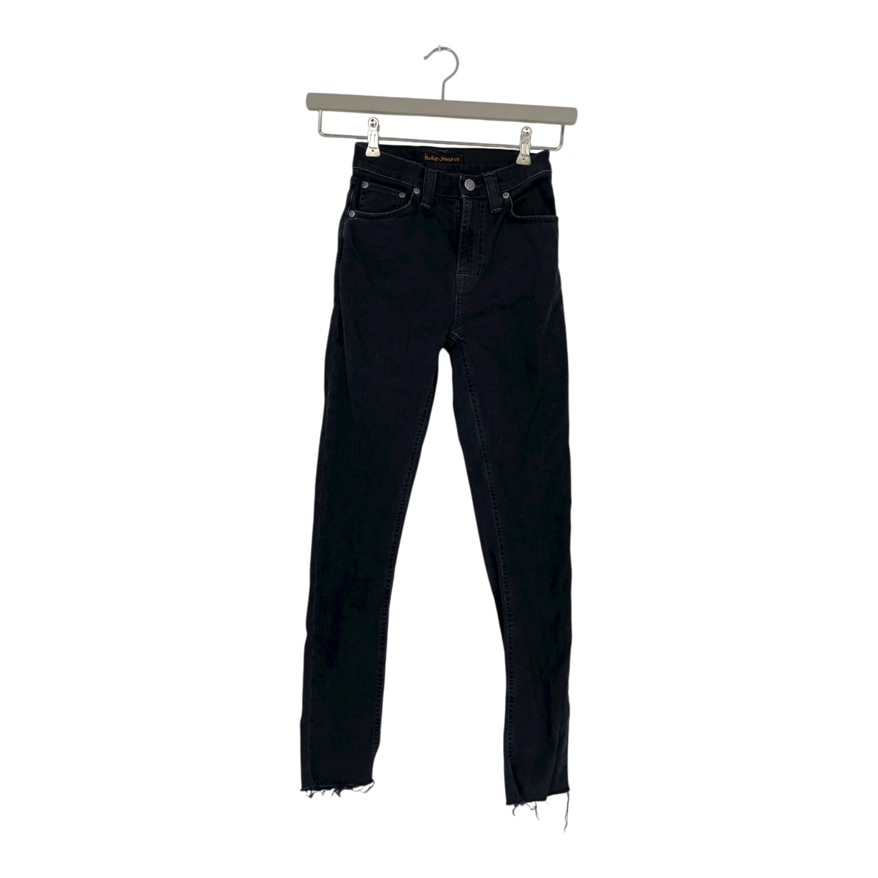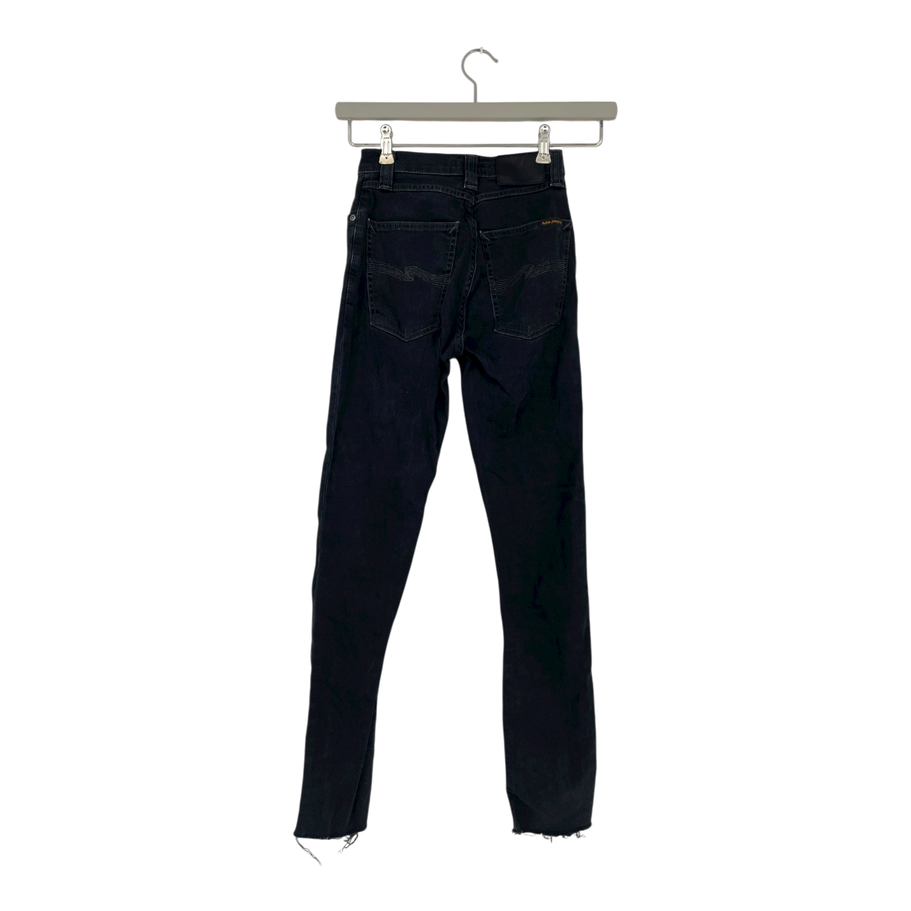 Nudie Jeans women's super skinny high rise stretch jeans. The original length is 32inch but the jeans have been cut.