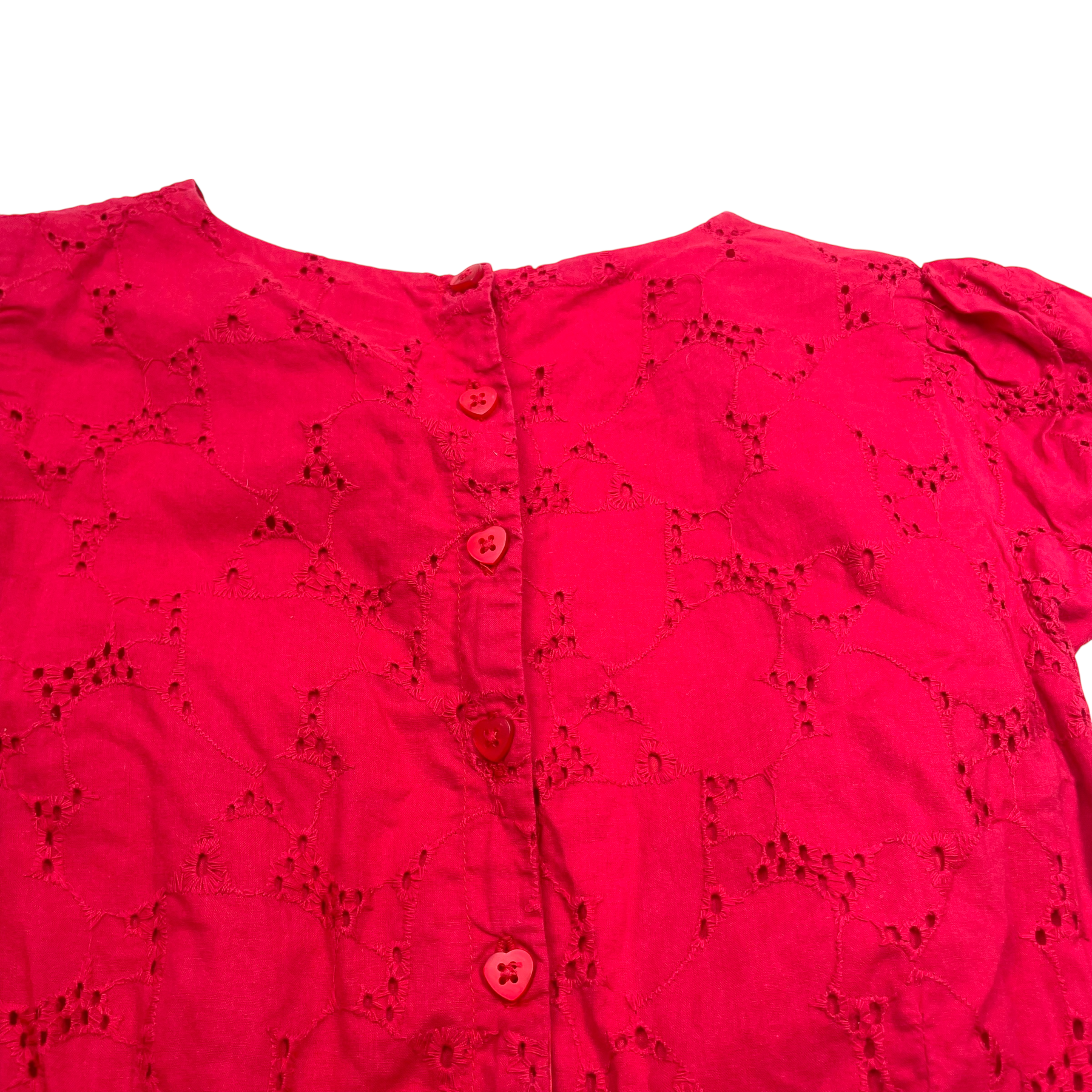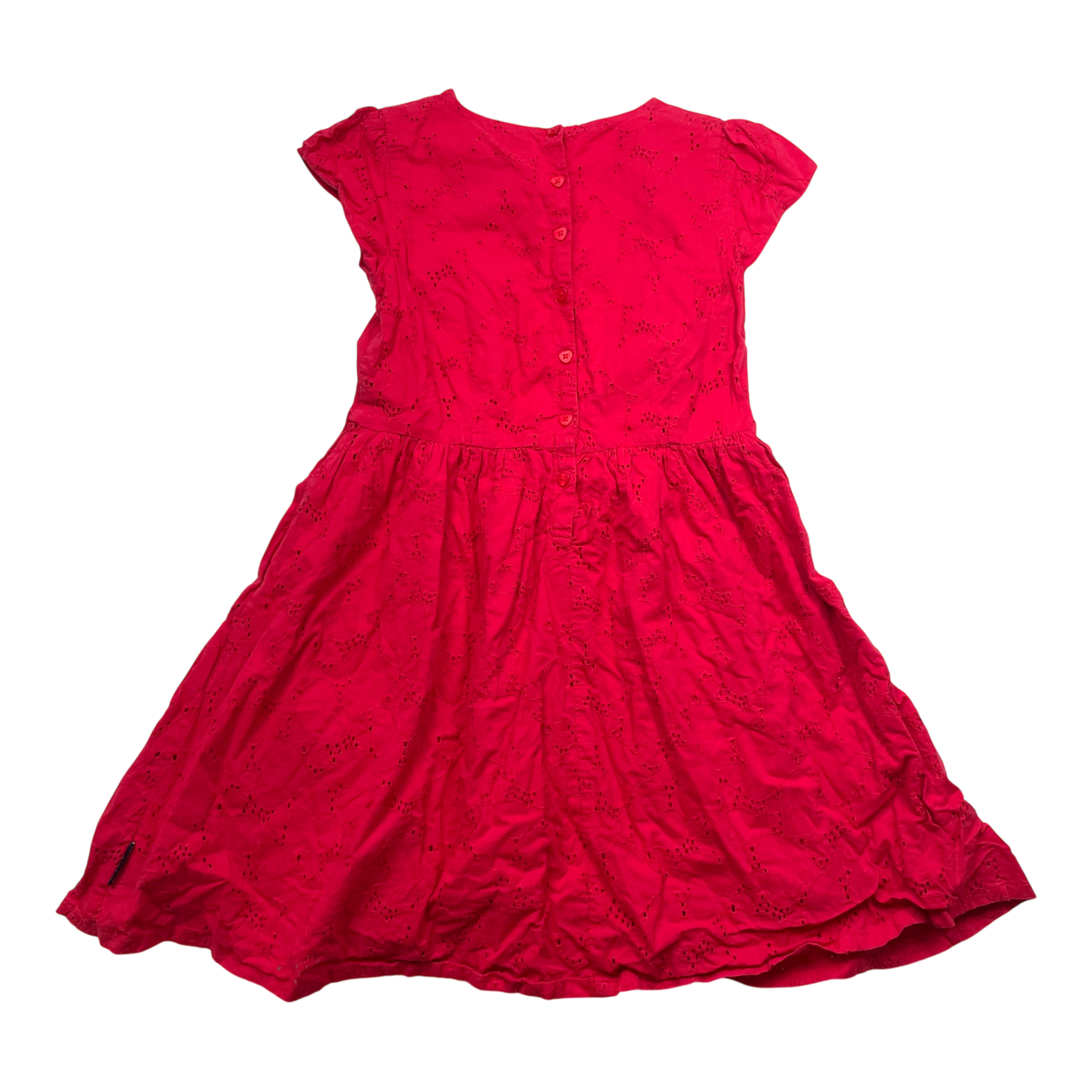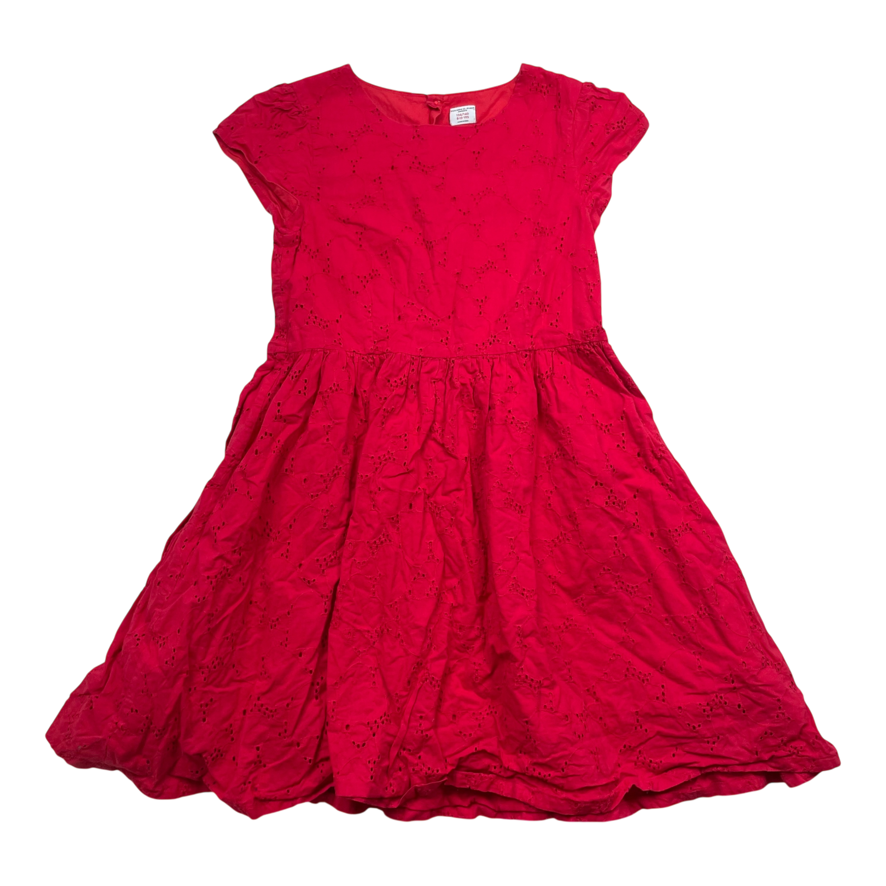 Polarn O. Pyret sleeveless dress. The dress has a lace style fabric and buttons on the back. Dress has a lining.