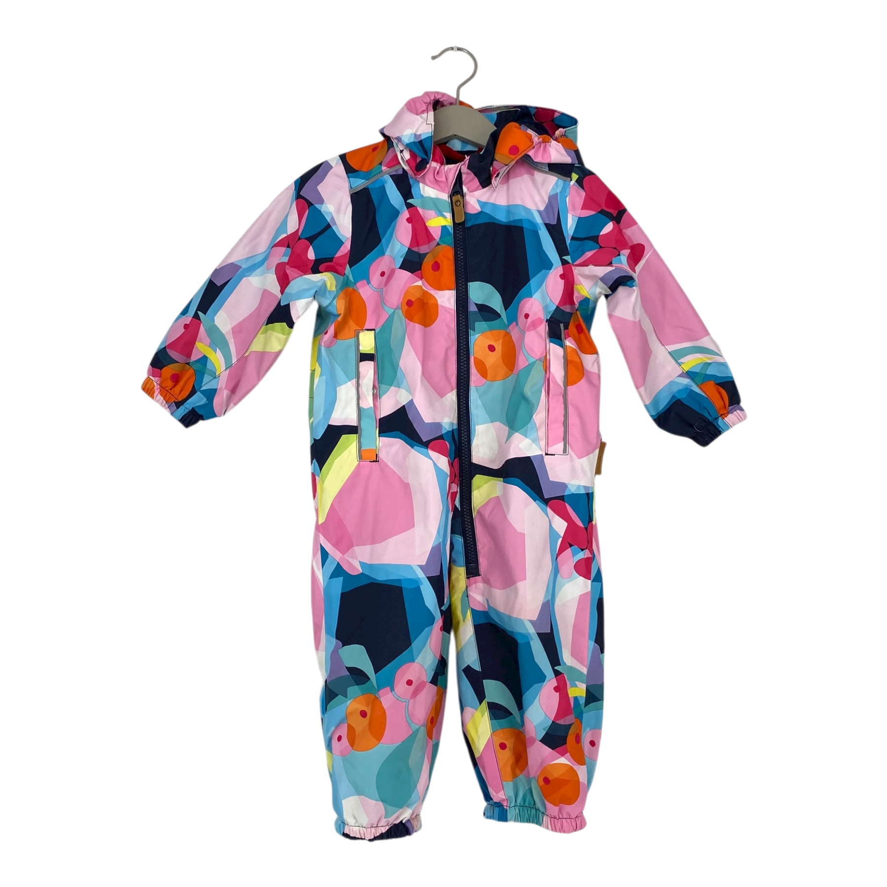 Reima Batans toddlers' spring jumpsuit is made from a water-repellent material with sealed seams for a waterproof finish. The functional material is also windproof and dirt-repellent. The smooth polyester lining makes dressing easier and won't affect movement when little ones are having fun outdoors. The hood is detachable for safety and the elasticated foot loops, which can be removed, keep the leg hems in place. This breathable toddlers' all-in-one comes with lots of thoughtful details, like an adjustable waist, a zipped pocket and reflective accents.