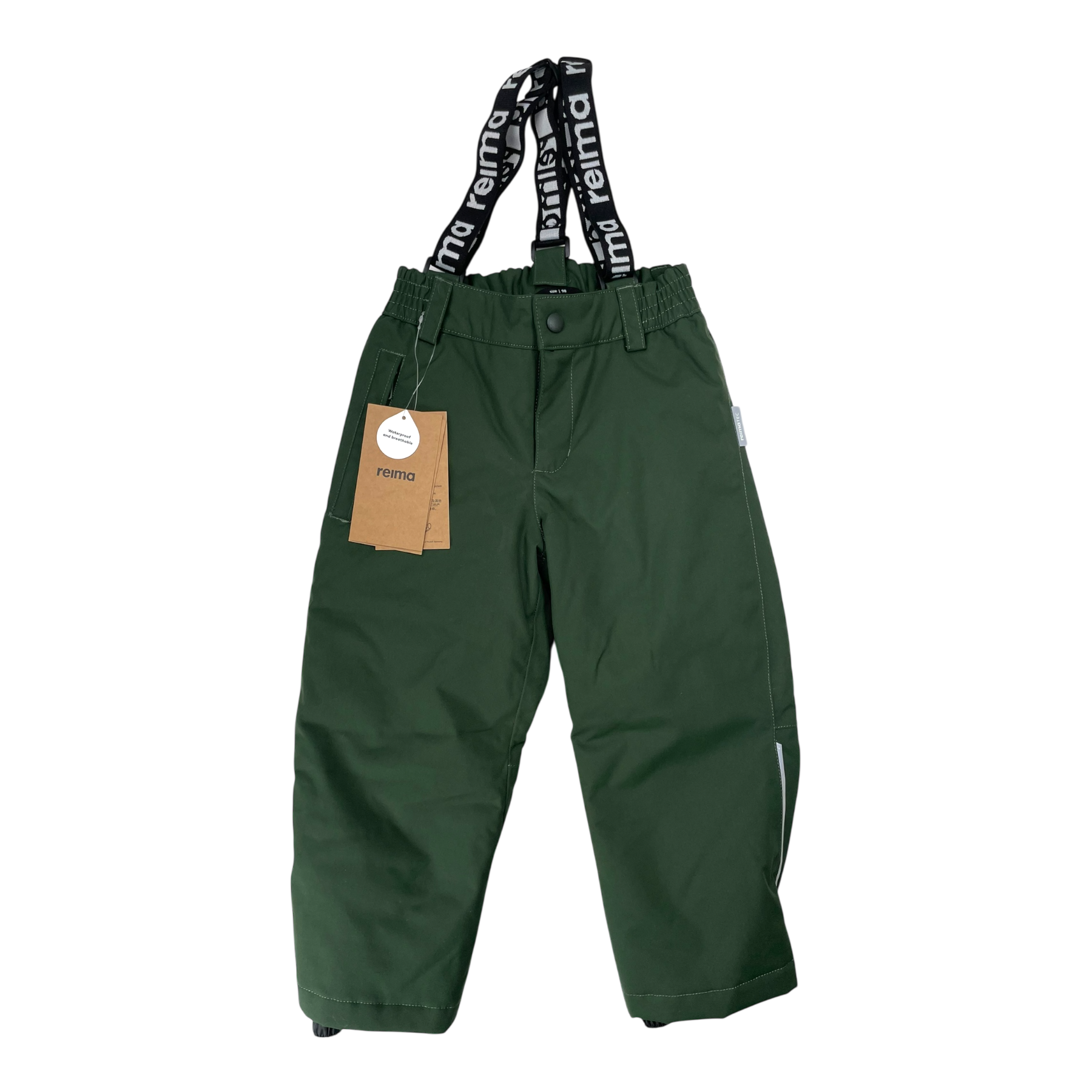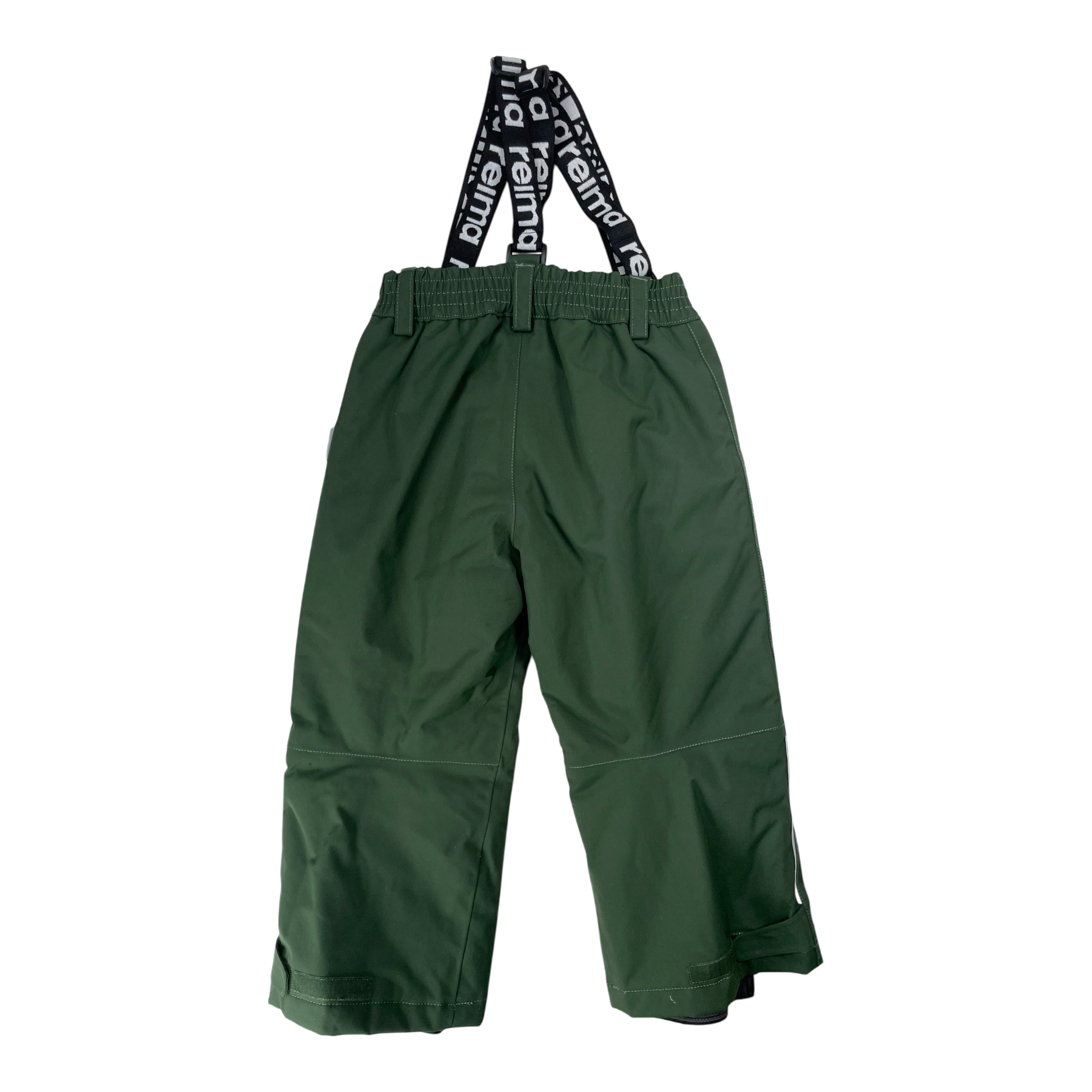 Reima Loikka outdoor pants for winter are originally waterproof. All seams sealed and material is also durable. There are zip pocket, elastic waist, adjustable leg ends with snow locks. Elastic and adjustable suspenders and reflecting details.