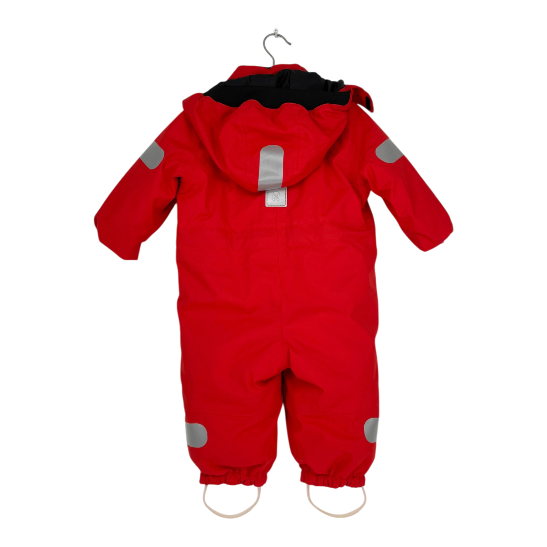 Reima Marte mid winter overall is inspired by Reima's '70s-style collection. The smooth lining makes putting it on easy. Overall has detachable hood, adjustable hood, and durable foot loops. Two flap pockets and big reflective details finish off the retro look.