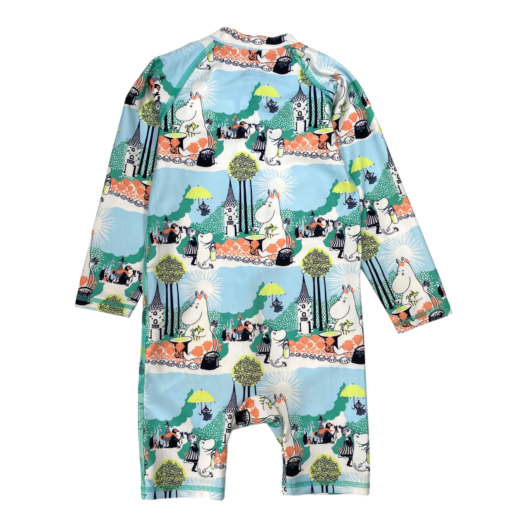 Reima moomin sandvig UV protective swim suit with a zipper in the front.