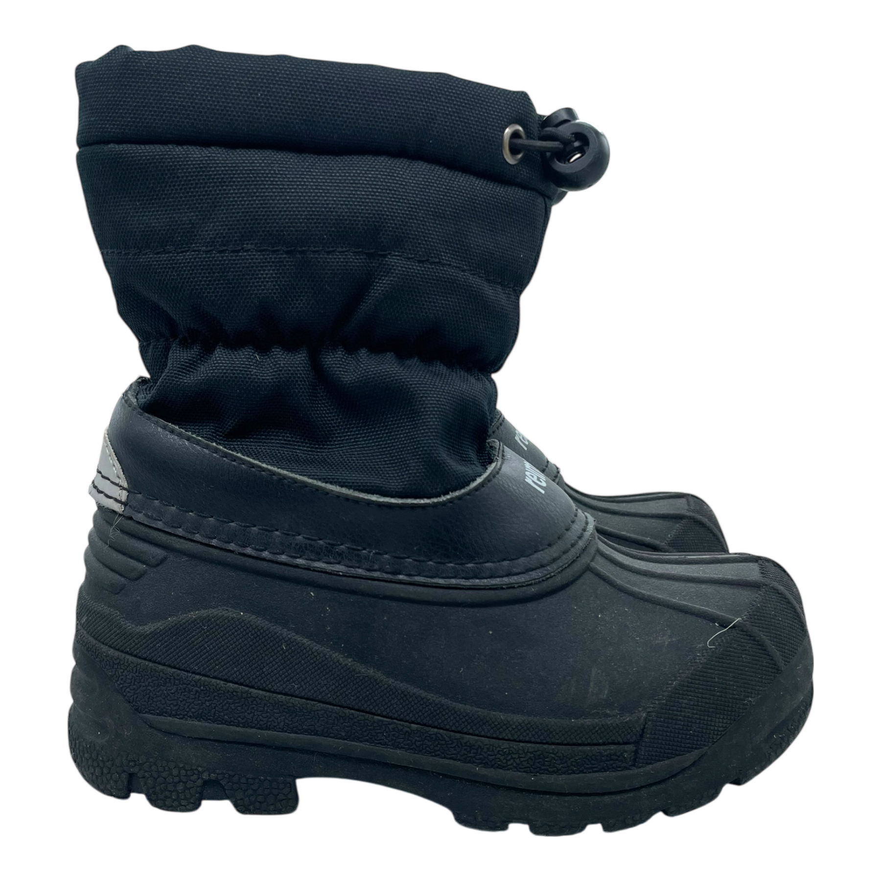 Reima Nefar duck snow boots equipped with a completely waterproof galosh section in durable thermoplastic rubber for protection from slush on wet days.