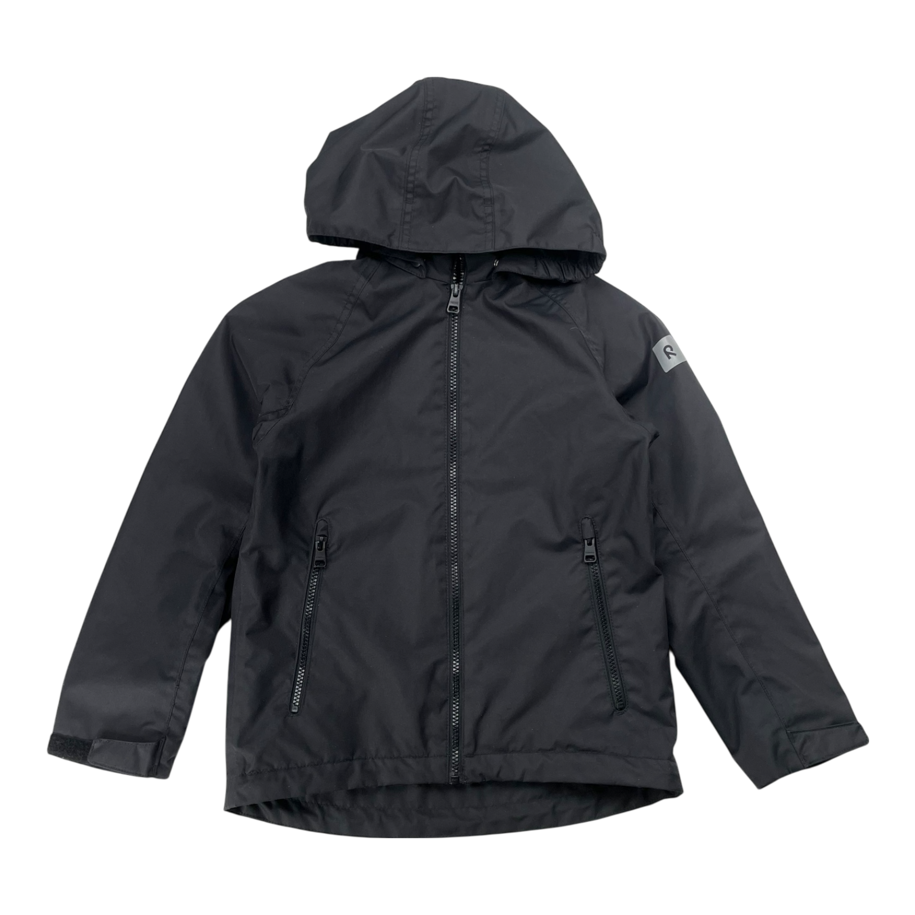 Reimatec Soutu jacket with a detachable hood, two zip pockets on the sides, reflective details, and adjustable elastic at the hem. The material is originally waterproof up to 8,000mm water column, and the seams are sealed. Fluorocarbon-free water and dirt repellent finish BIONIC-FINISH®ECO.