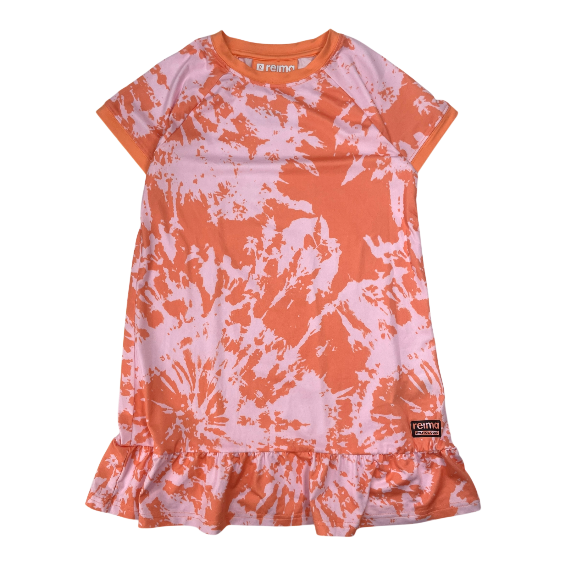 Reima Tuulonen dress with short sleeves and frilled hem. It's made from our Xylitol Cool material that stretches four ways and is finished with a cooling treatment. The Reima dress comes originally with UV protection factor 40+.