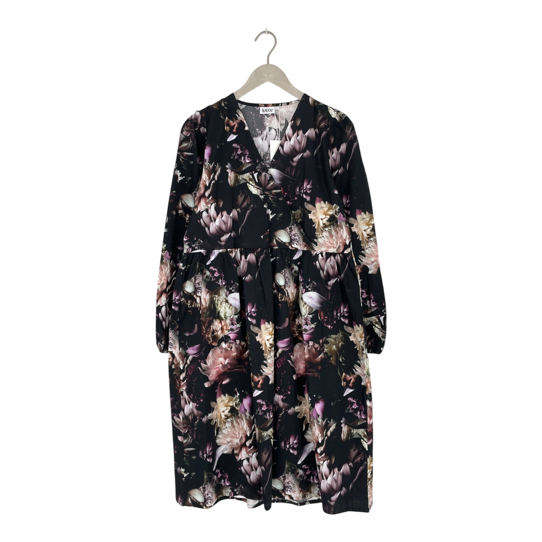 Toive puff-sleeved wrap neckline dress in a peony print.