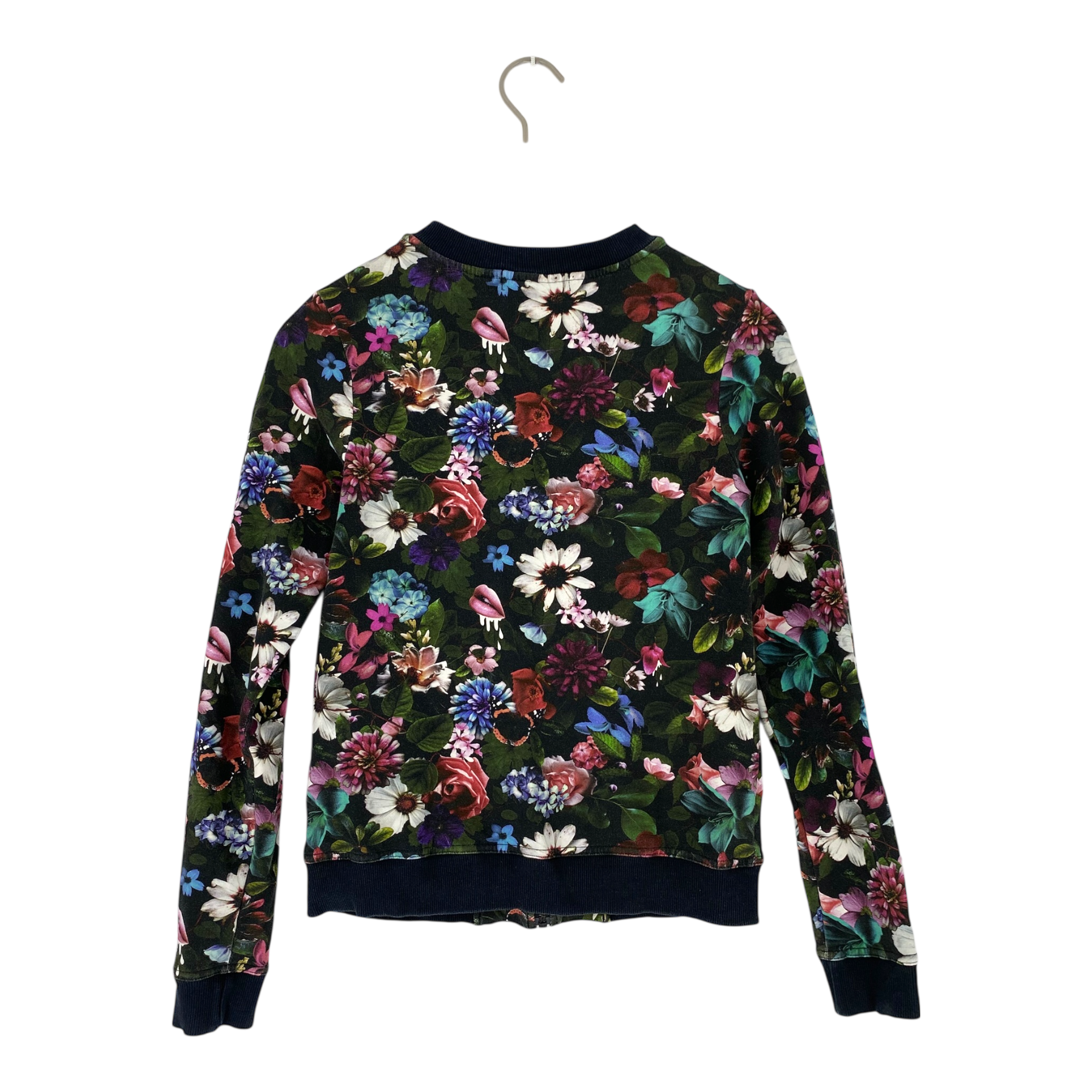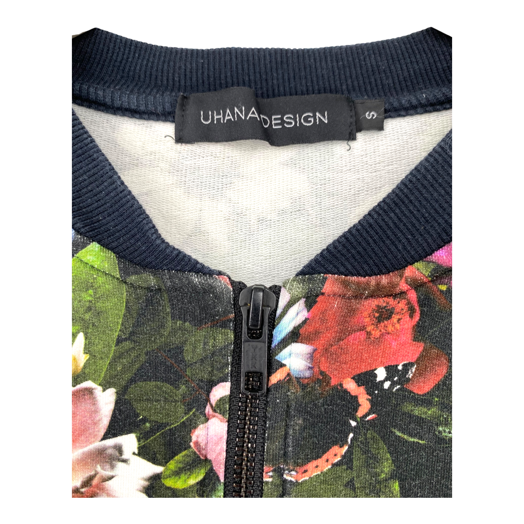 Uhana sweat jacket with a zipper and pockets in flower print.