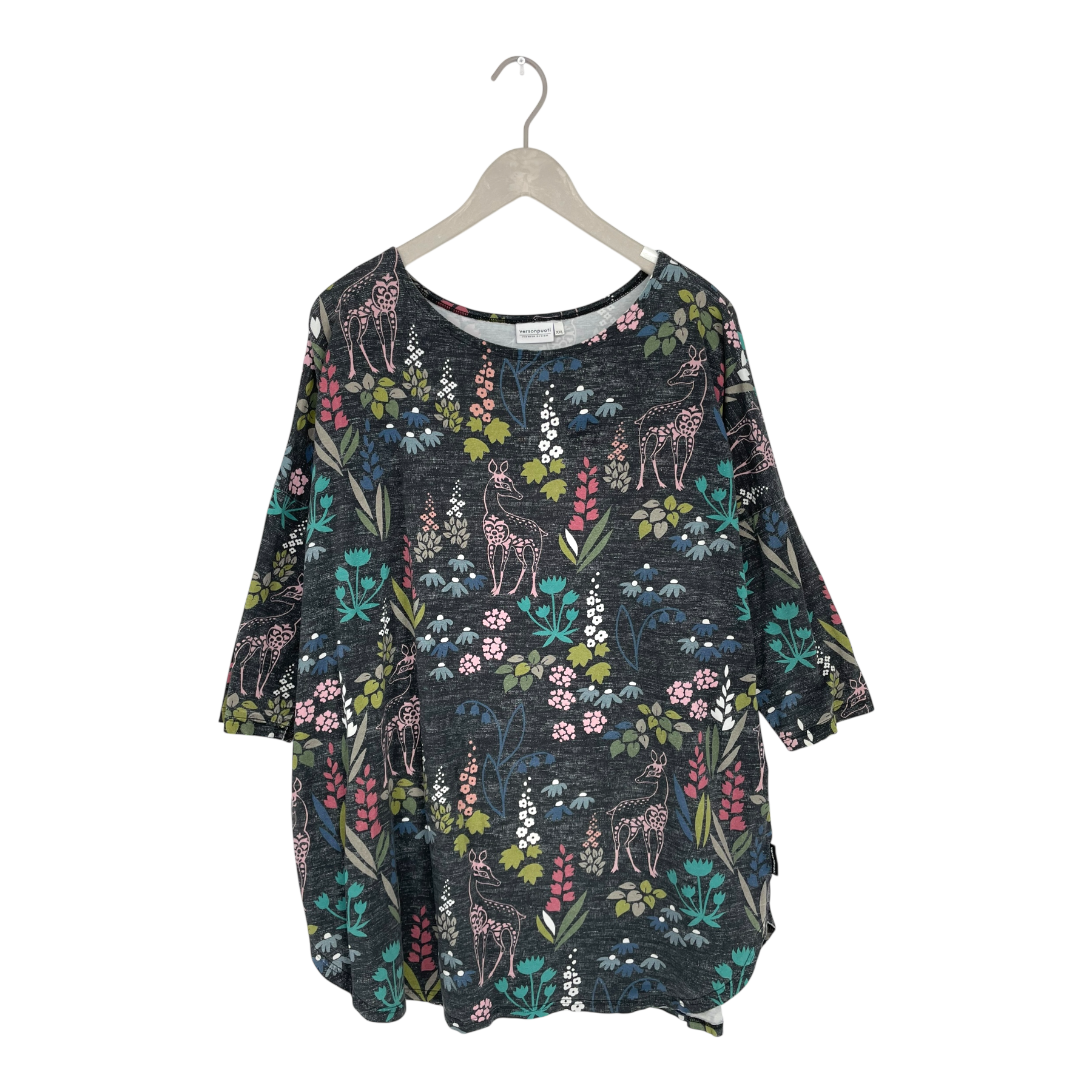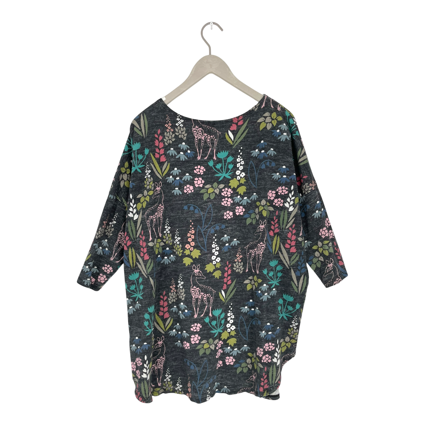 Versonpuoti long-sleeved shirt in Kauris print. Shirt is slightly longer, it has rounded hem and a boat neck.