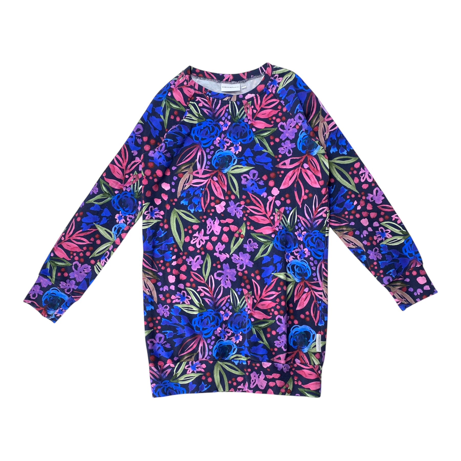 Versonpuoti tunic sweatdress, flowers | 128/134cm