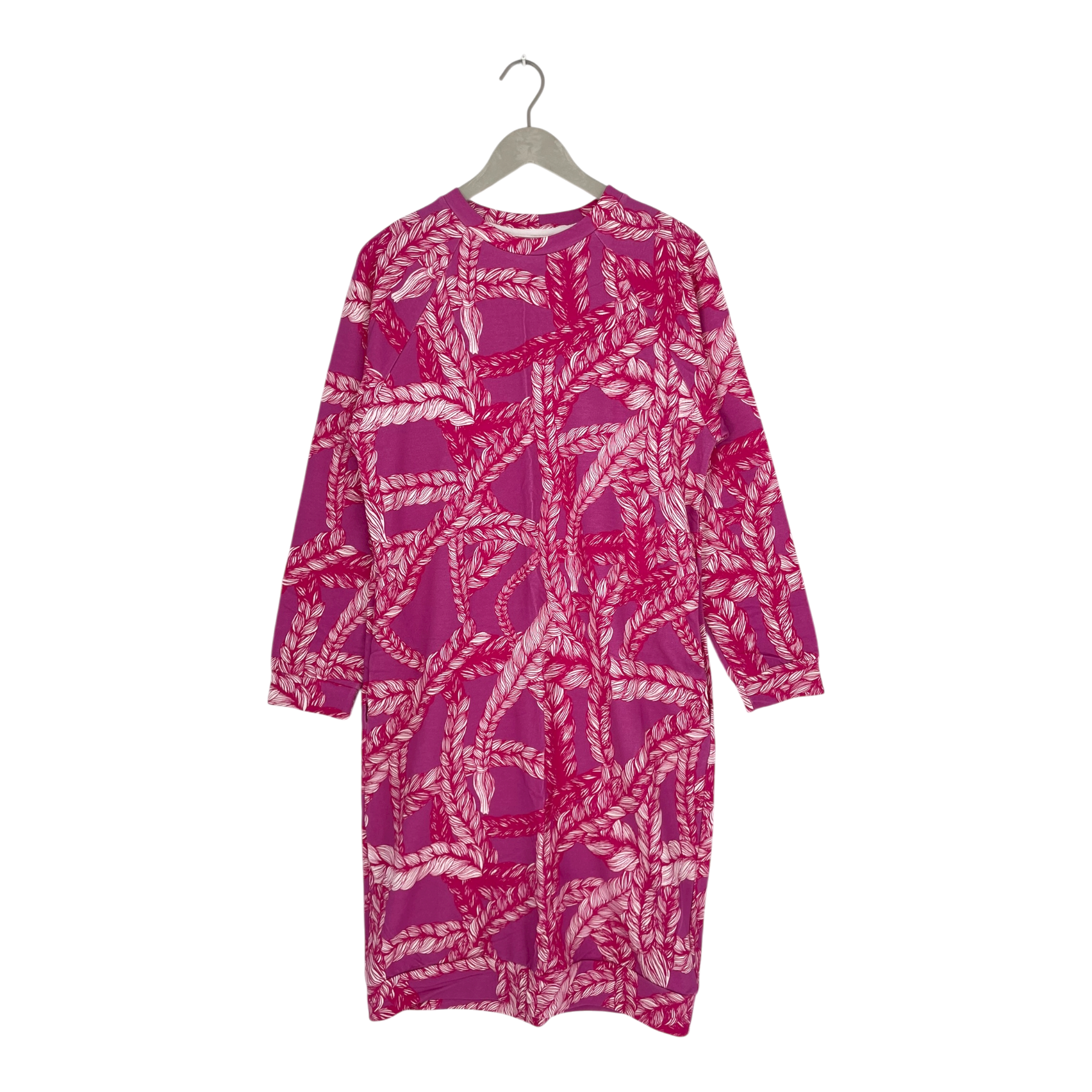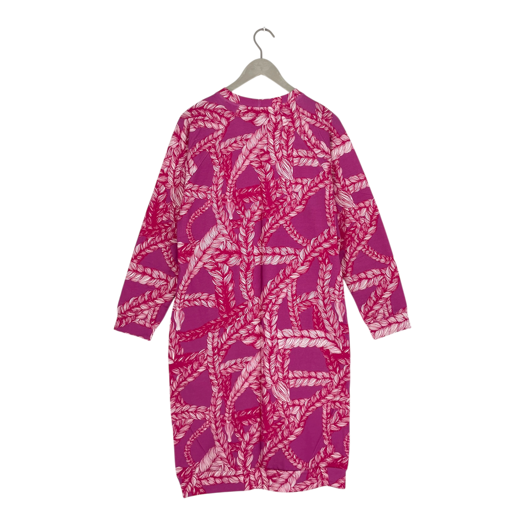 Vimma dress in with the classic braid print in. This is a one size dress with long sleeves and pockets in the front. Fit approximately size S-L.