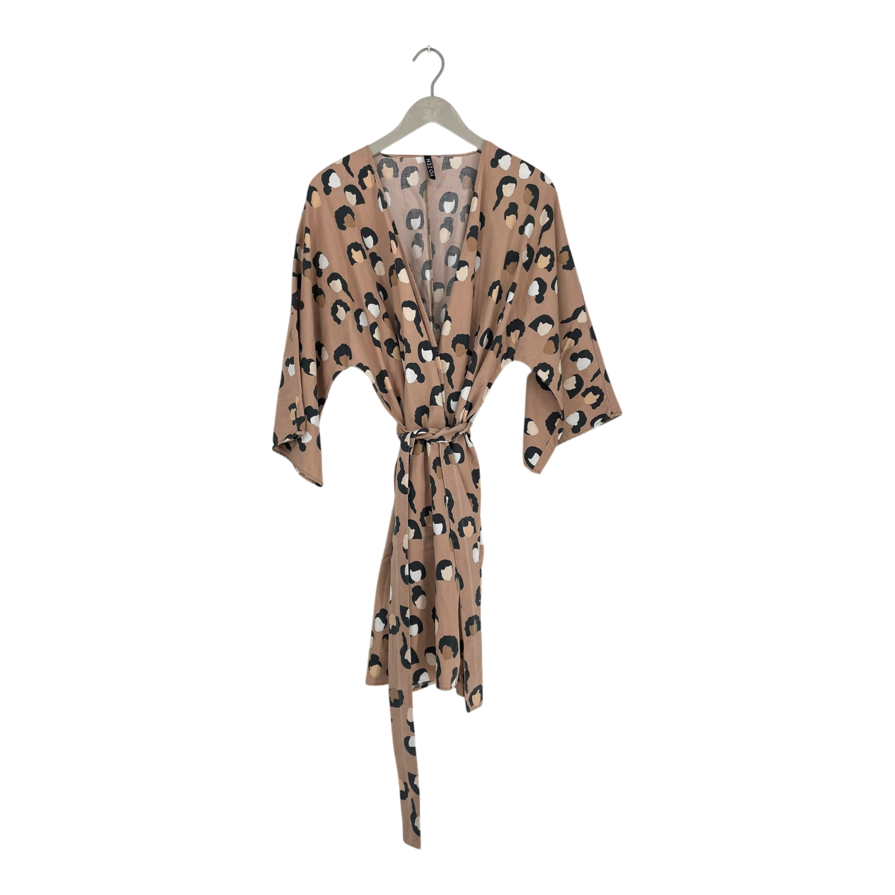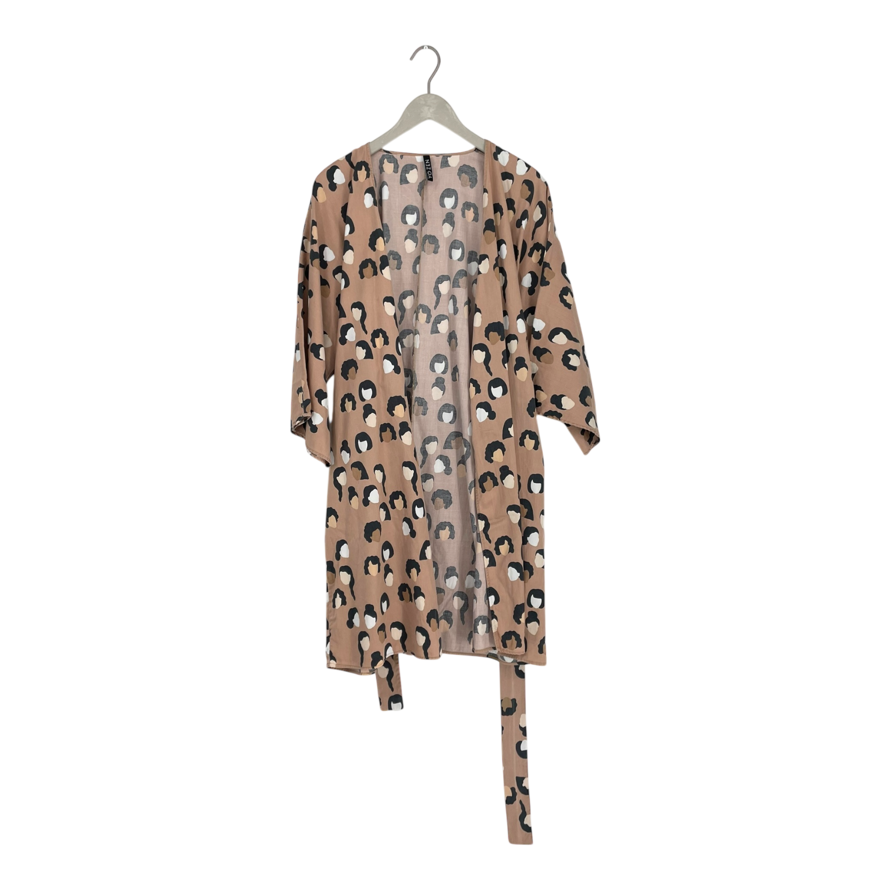 Yo Zen women's kimono dress with a removable belt in a face print. Onesize fits S-L.