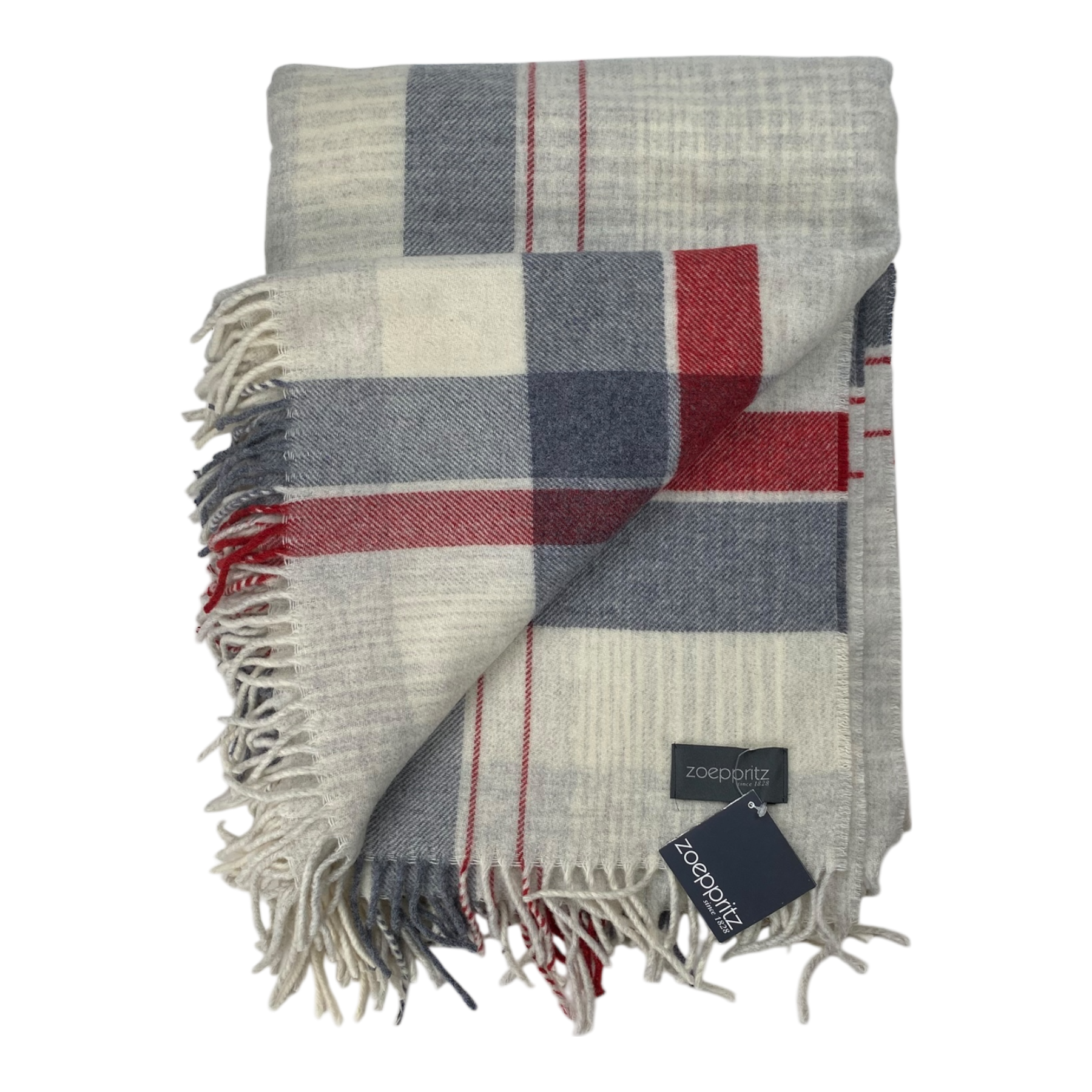 Zoeppritz knitted New Checks wool blanket with fringes.