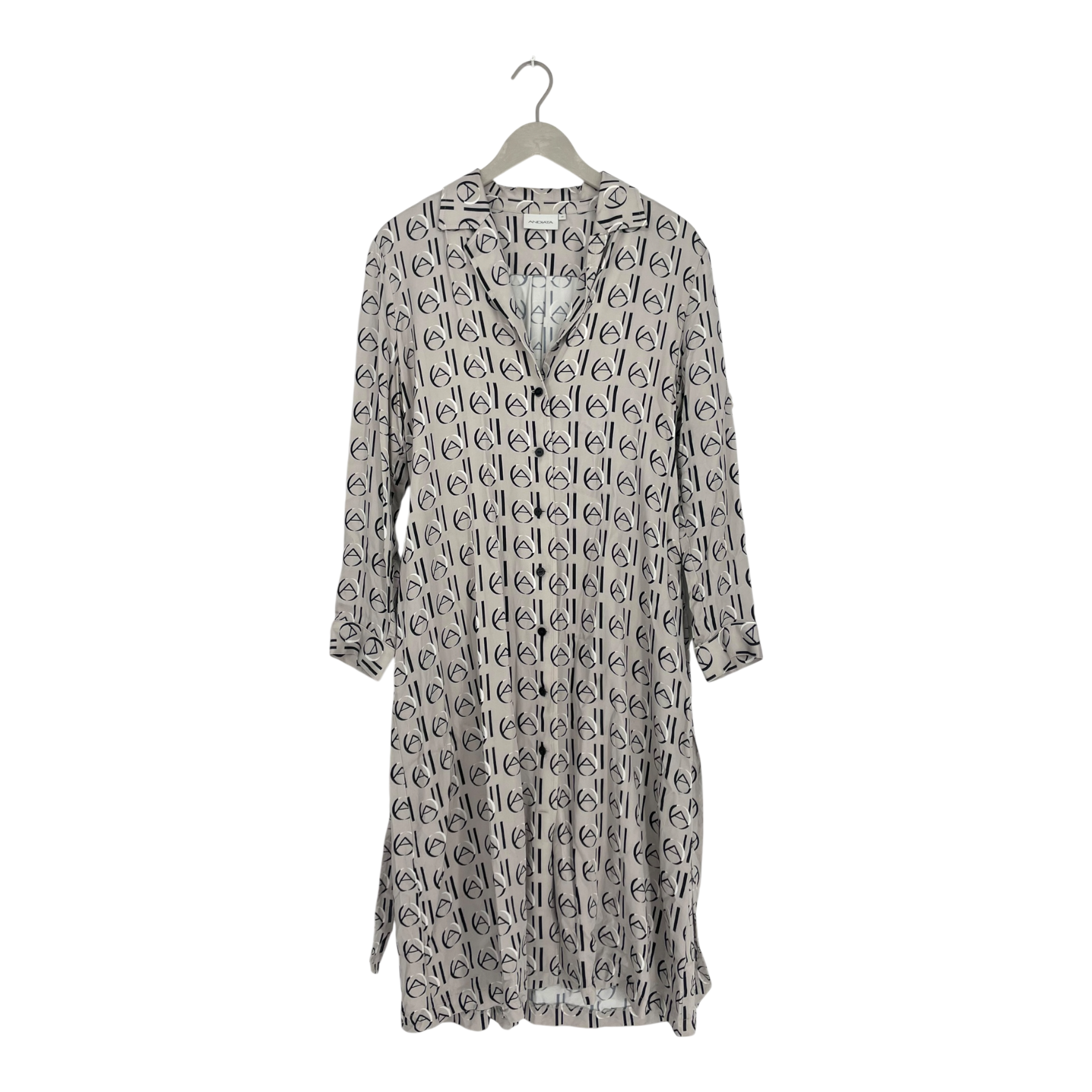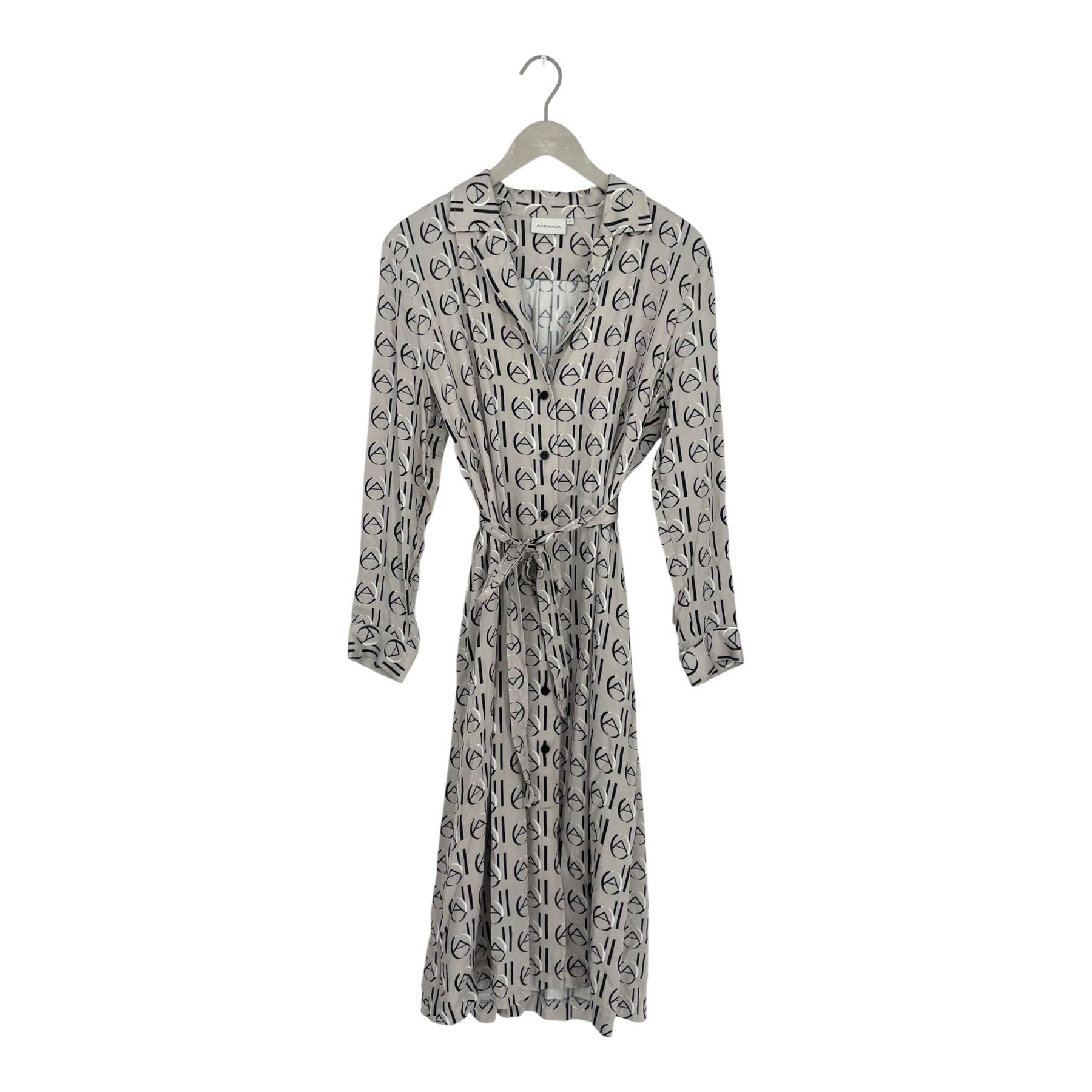 Andiata flowy dress in a circle "A" pattern. Buttons down the front, removable belt.