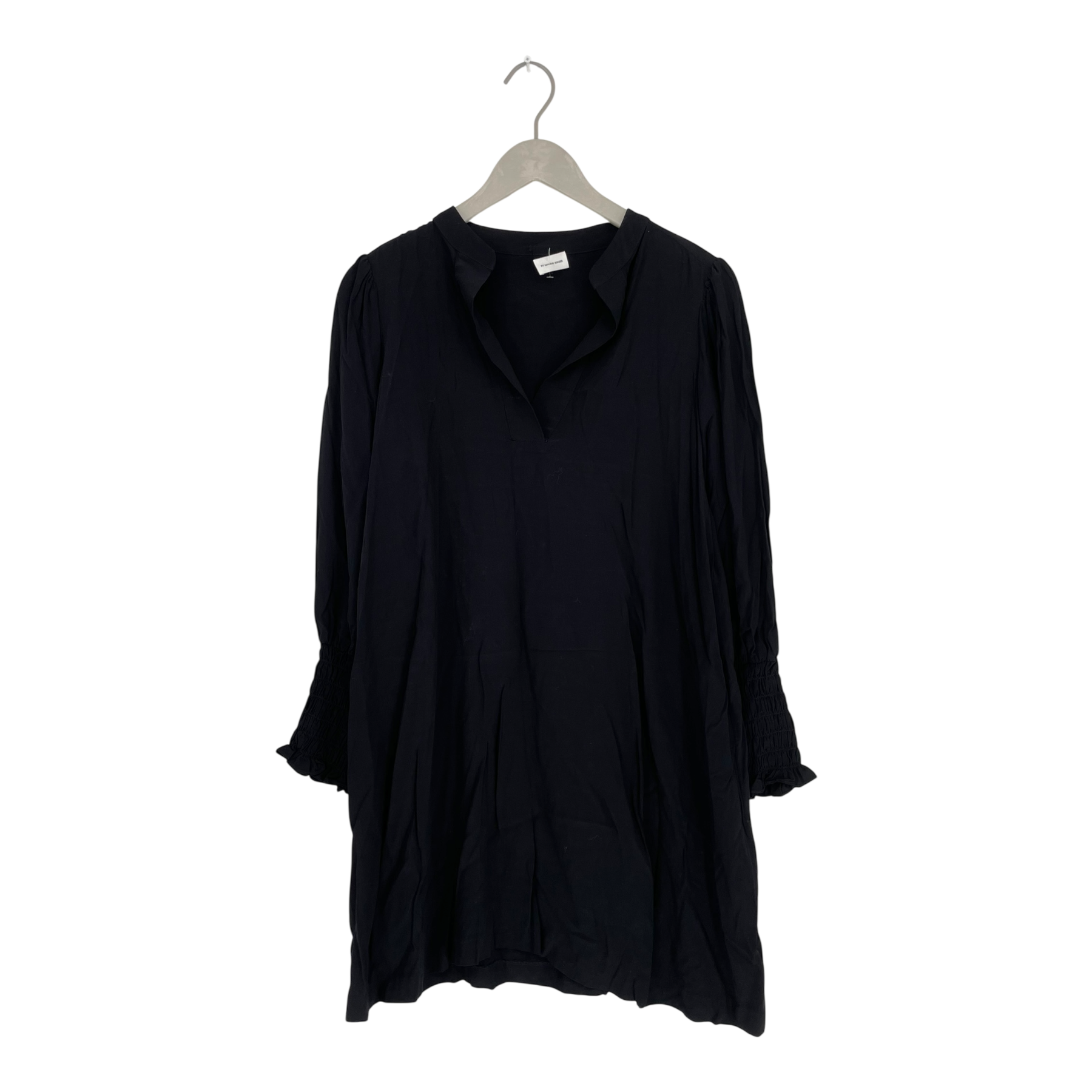 By Malene Birger Rousalile dress with an open v-neck, large cuffs and an oversize fit. The neck tag is partially loose and the item has a very light stain, as shown in the pictures.