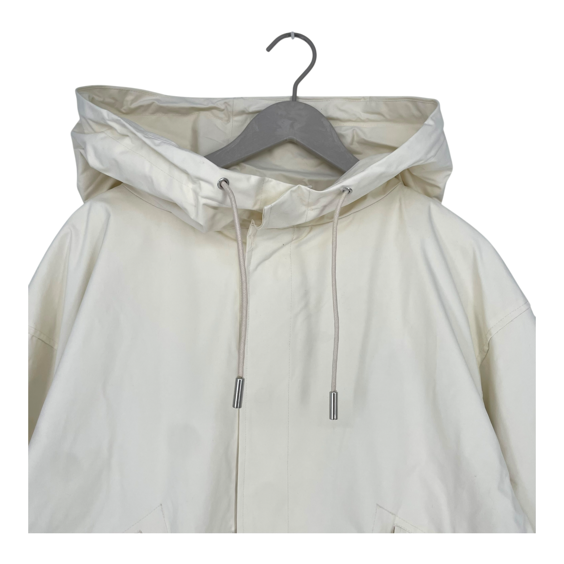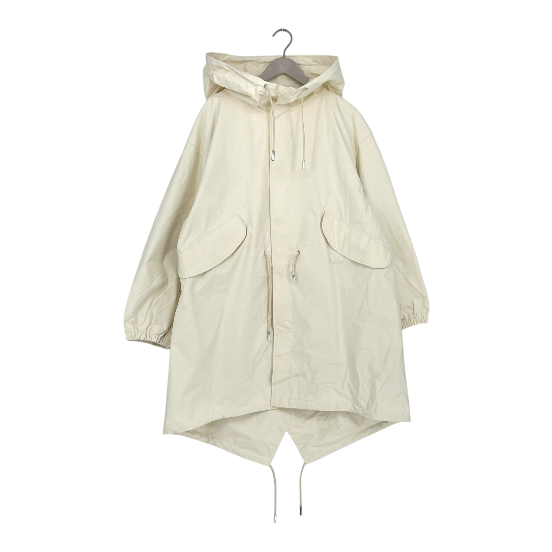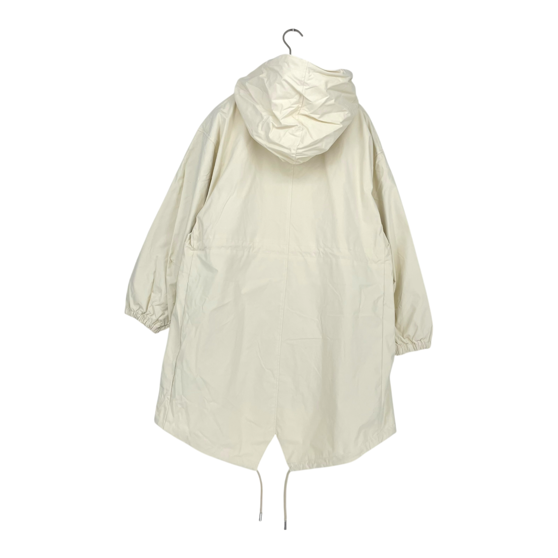 • big hood, adjustable waist with dawcord, fishtail back