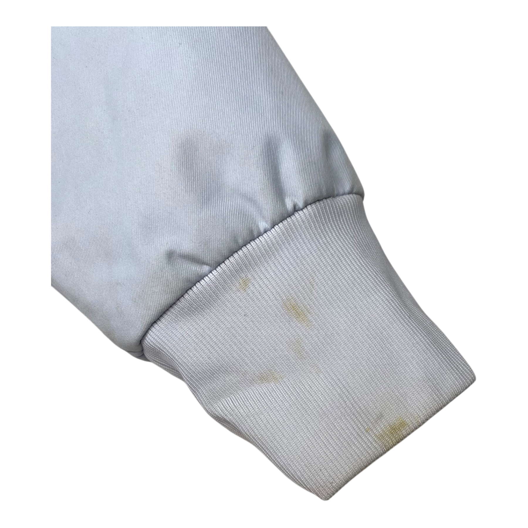 Gugguu flash midseason jacket has a detachable hood, two pockets in the front, rib cuffs and reflective Gugguu logos. The jacket has no padding. The item has some stains on the sleeve.