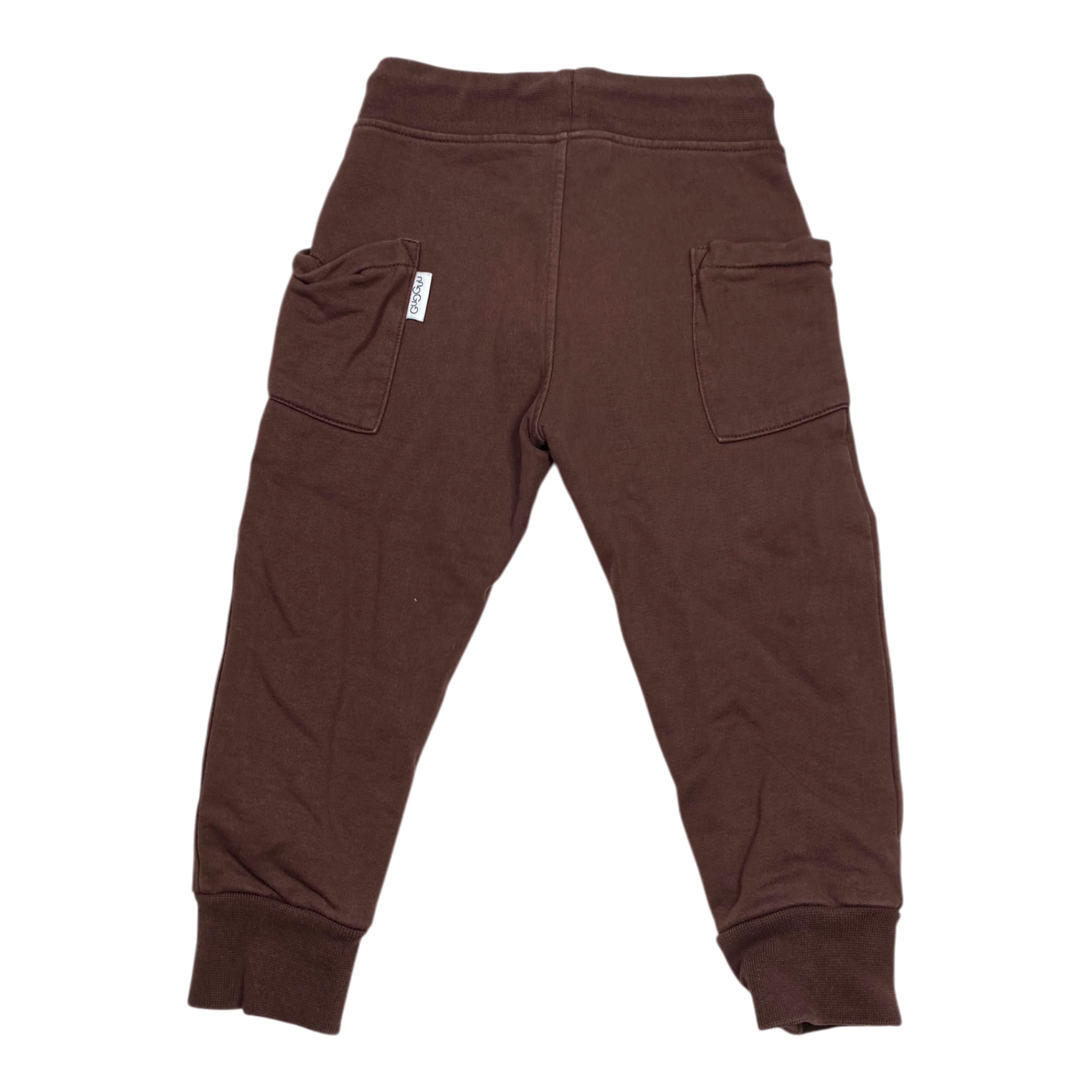 Gugguu sweatpants with an elastic waistband and small pockets. The original color has faded off.
