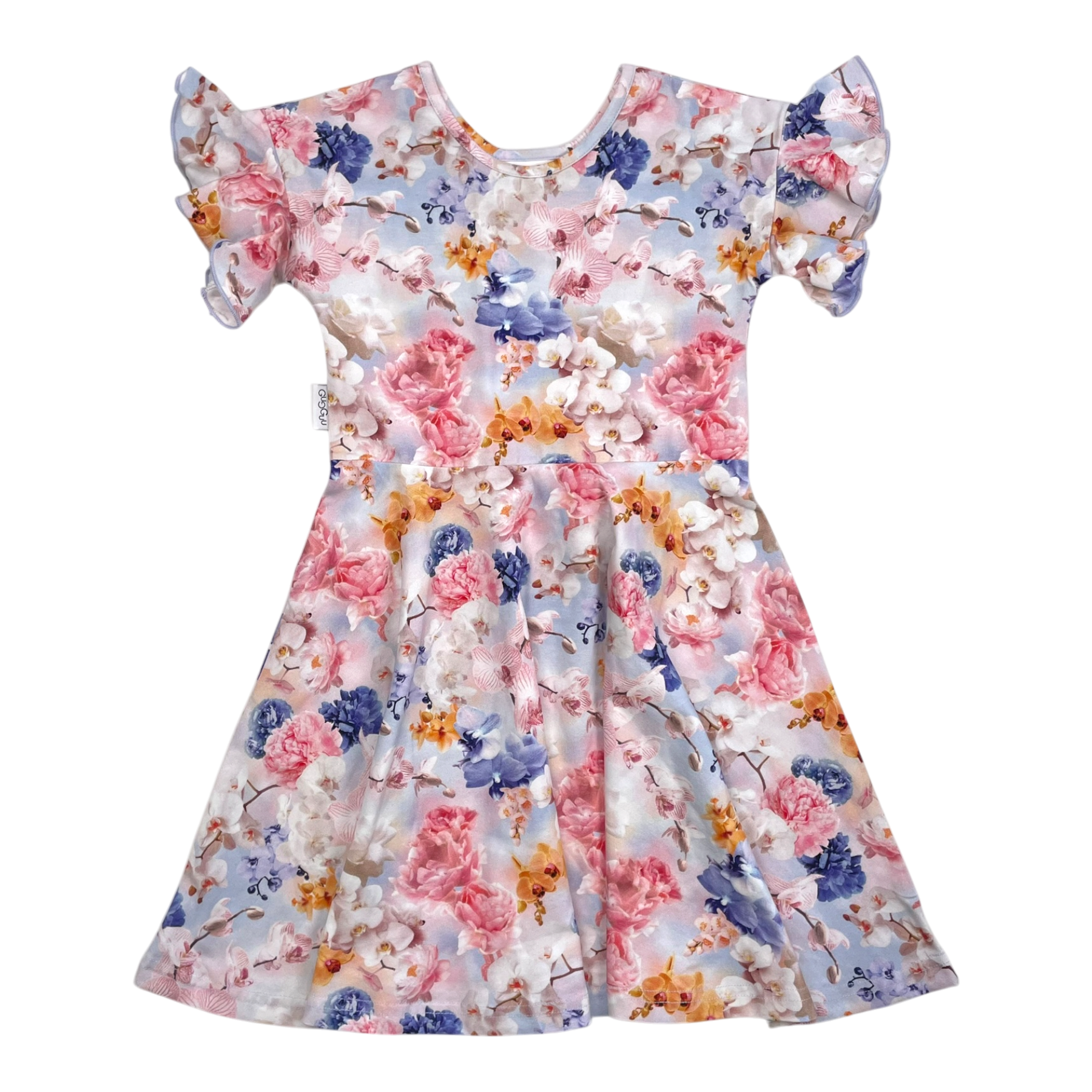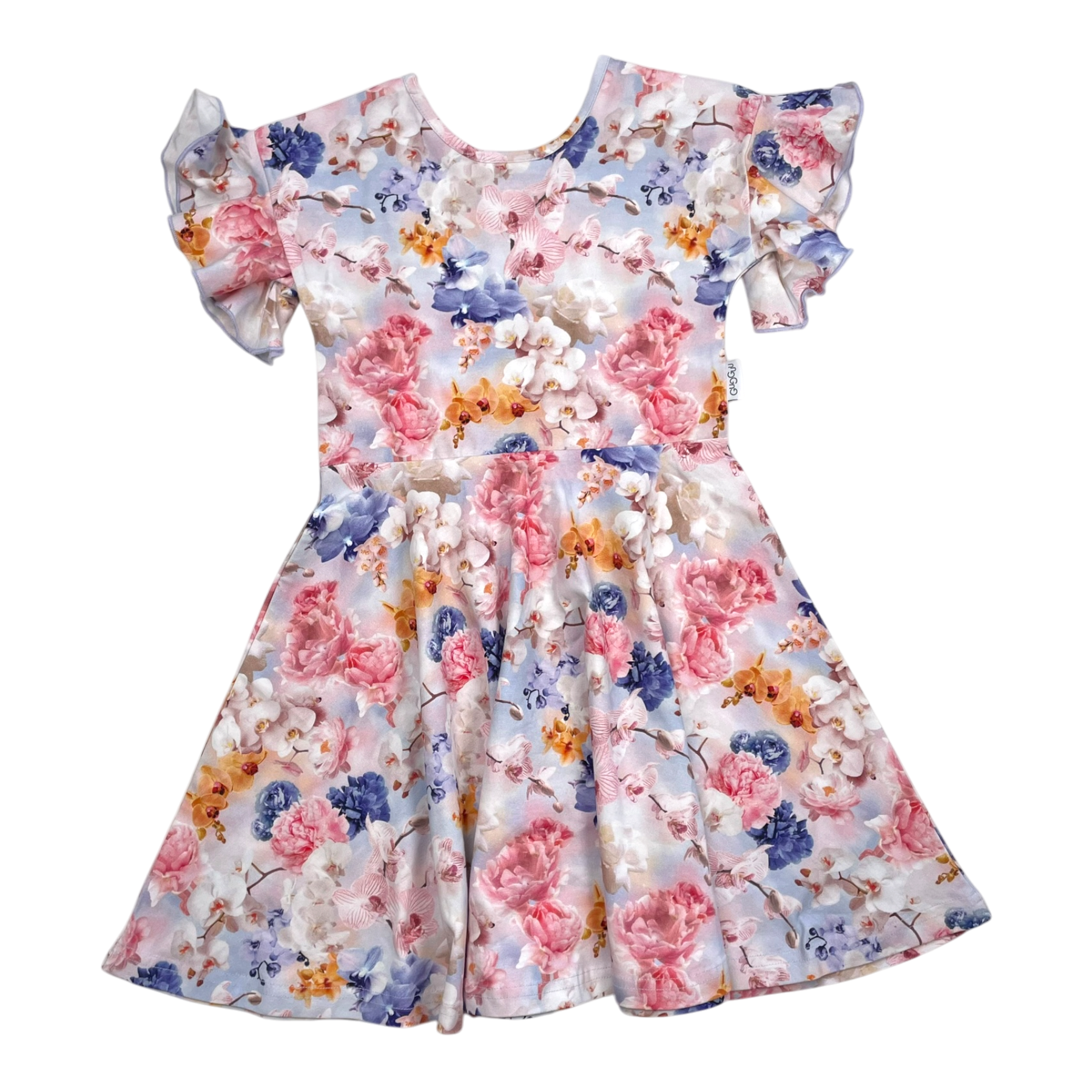 Gugguu short sleeved dress with frills in a flower print.
