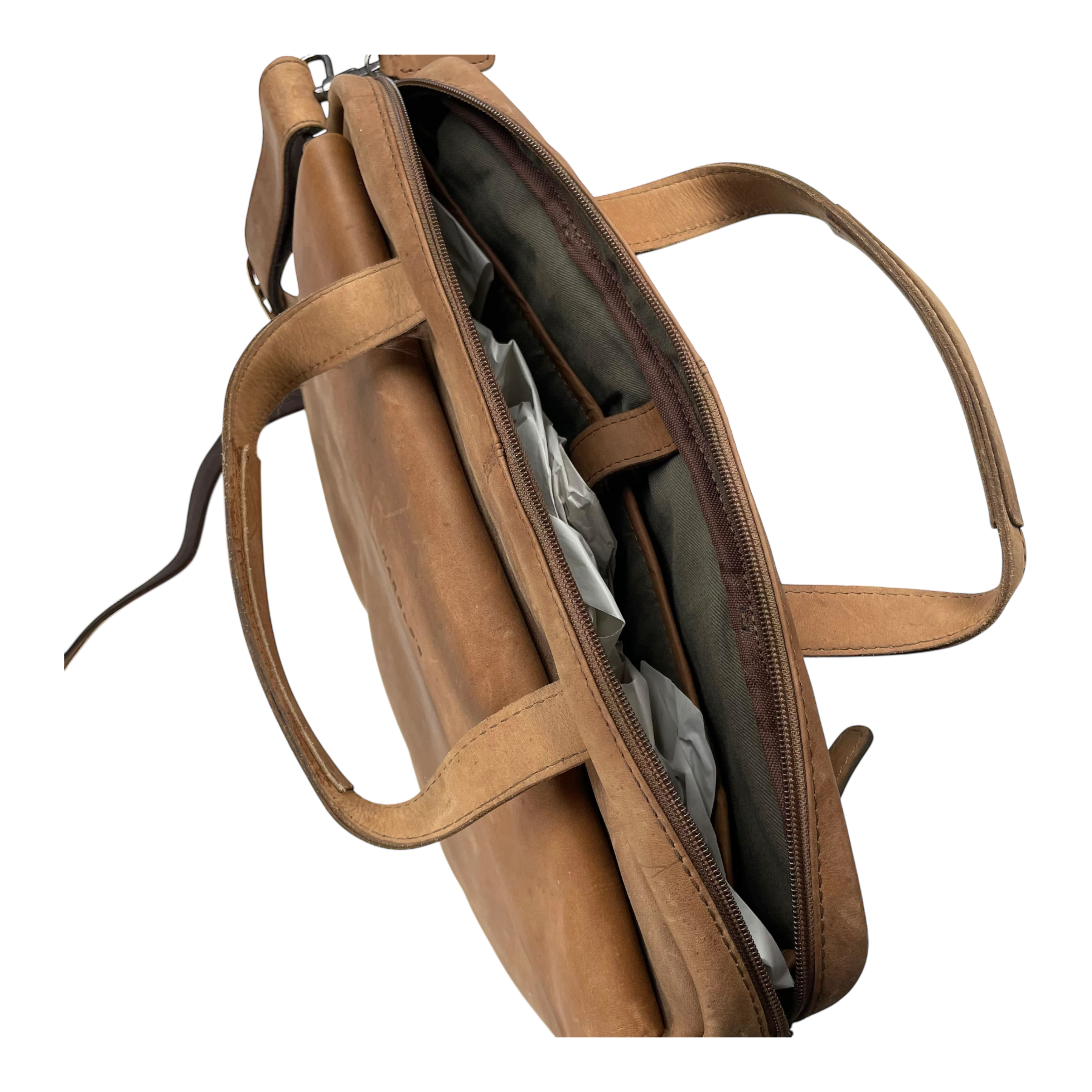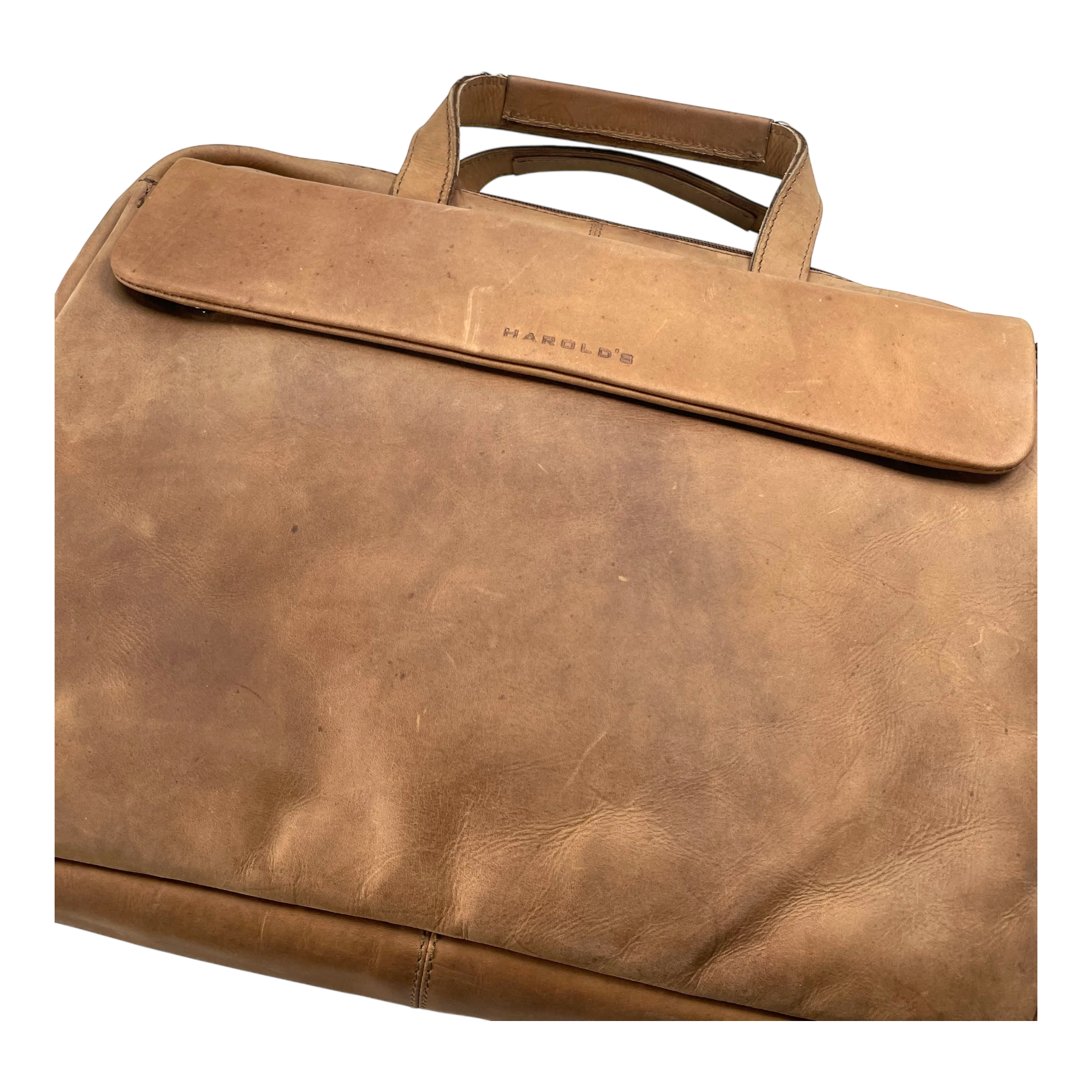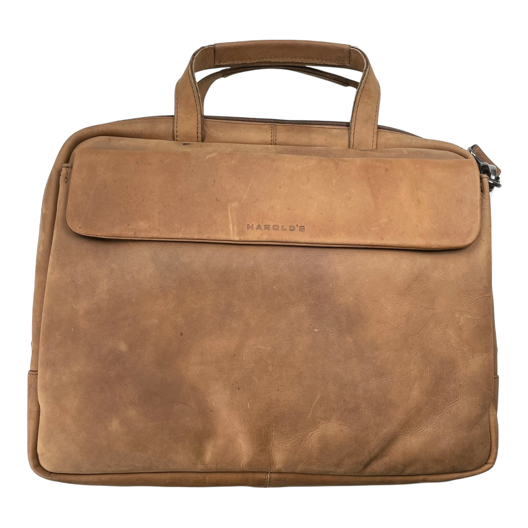 Harold's Bags briefcase with two handles, one magnetic closure pocket in  the front, two zipper closure pockets in the back and a zipper closure main compartment. This bag comes with an adjustable and removable thick crossbody strap. Fits A4 documents or a laptop.