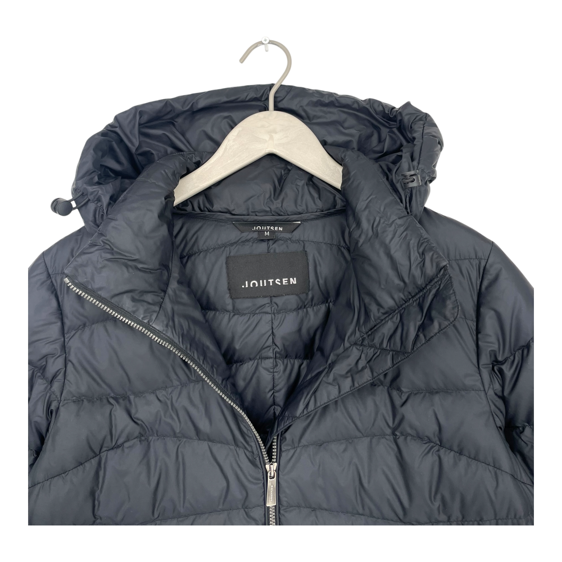 Joutsen Kenno jacket is a light down jacket with a honeycomb stitching. The jacket has a standard fit that lightly conforms to the contours of the body. There is two side pockets and a double-slider fastening zipper in the front that adds comfortability and daily functionality. The stand-up collar protects the neck, the hood can be detached with buttons and the sleeves can be rolled up for a better fit.