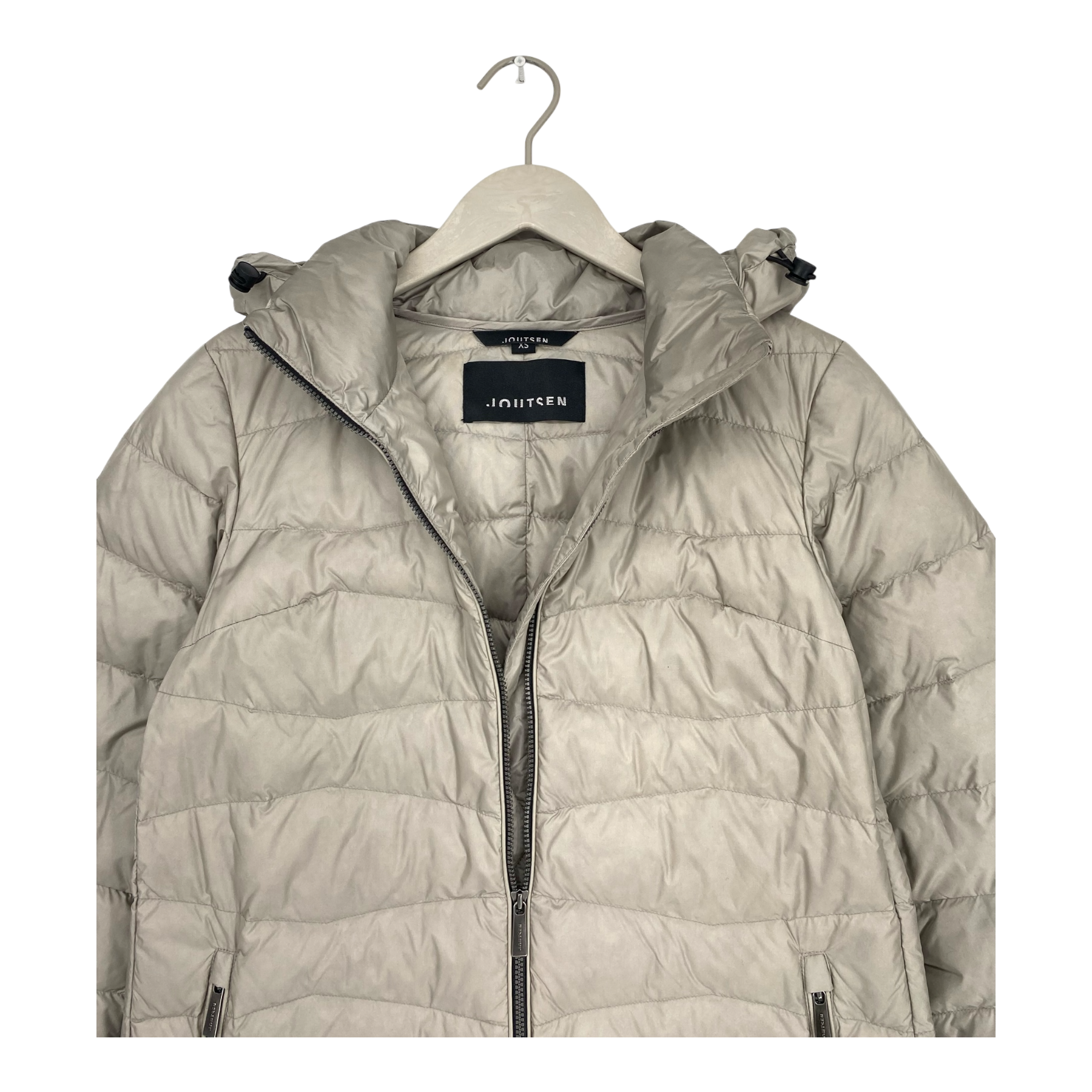 Joutsen Kenno jacket is a light down jacket with a honeycomb stitching. The jacket has a standard fit that lightly conforms to the contours of the body. There is two side pockets and a double-slider fastening zipper in the front that adds comfortability and daily functionality. The stand-up collar protects the neck, the hood can be detached with buttons and the sleeves can be rolled up for a better fit.