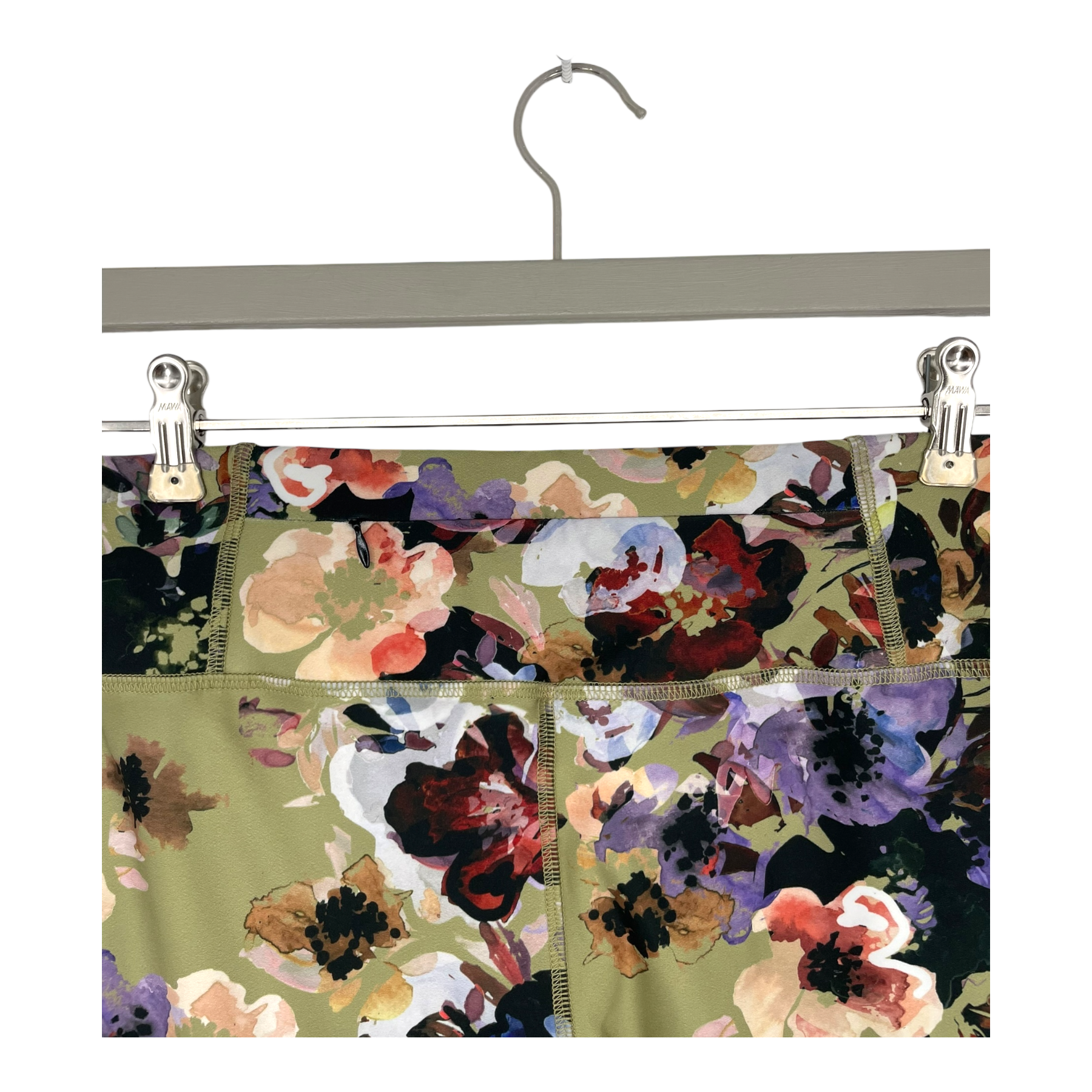 Kaiko Active tights in Olive Anemone print. These functional leotards are perfect for the gym, jogging, yoga class and everyday wear! The training leotards have a high waist and a wide waistband that supports the stomach and makes the leotards comfortable to wear. There is a small zippered pocket on the back of the waistband that can hold keys, for example. The leotards have a full-length bow.