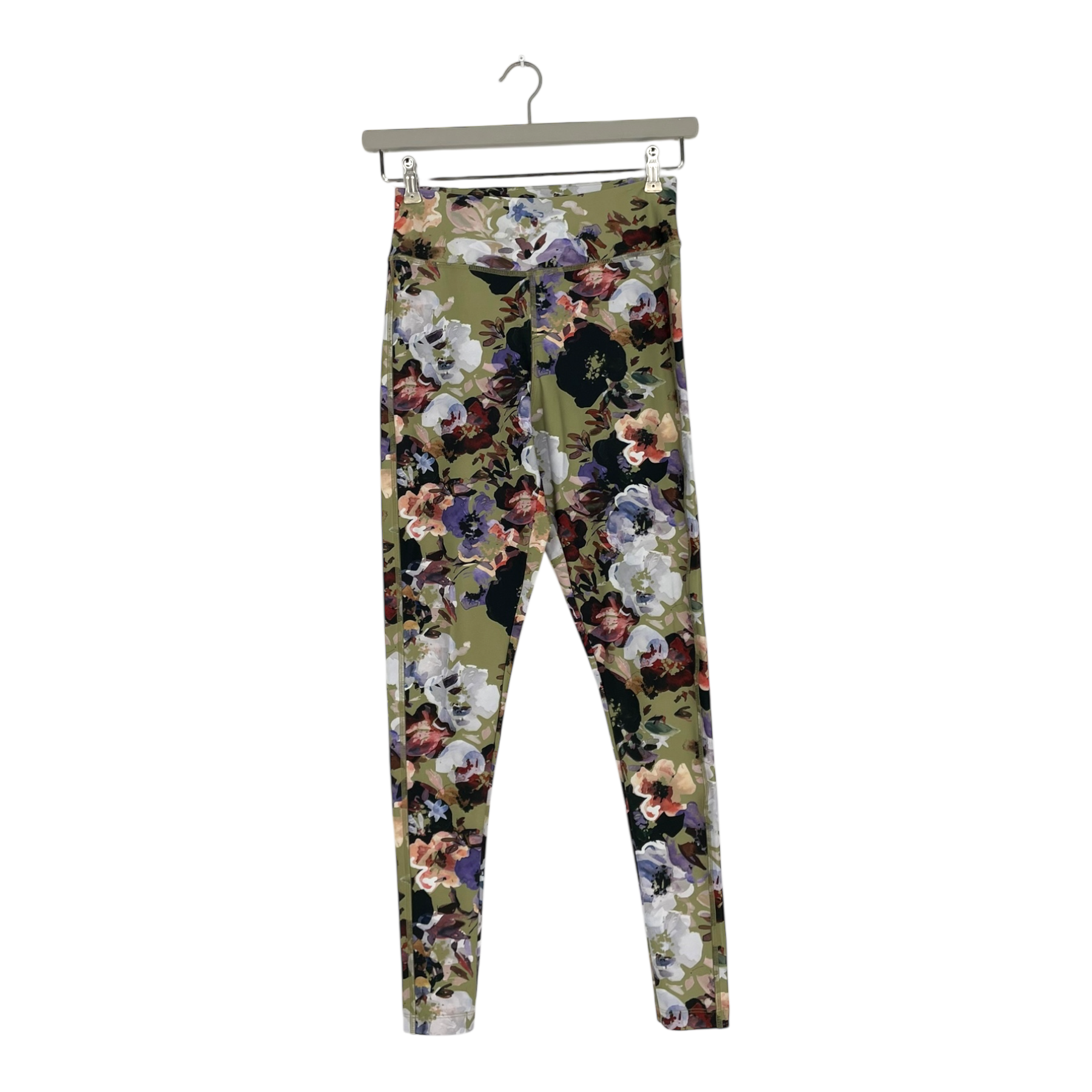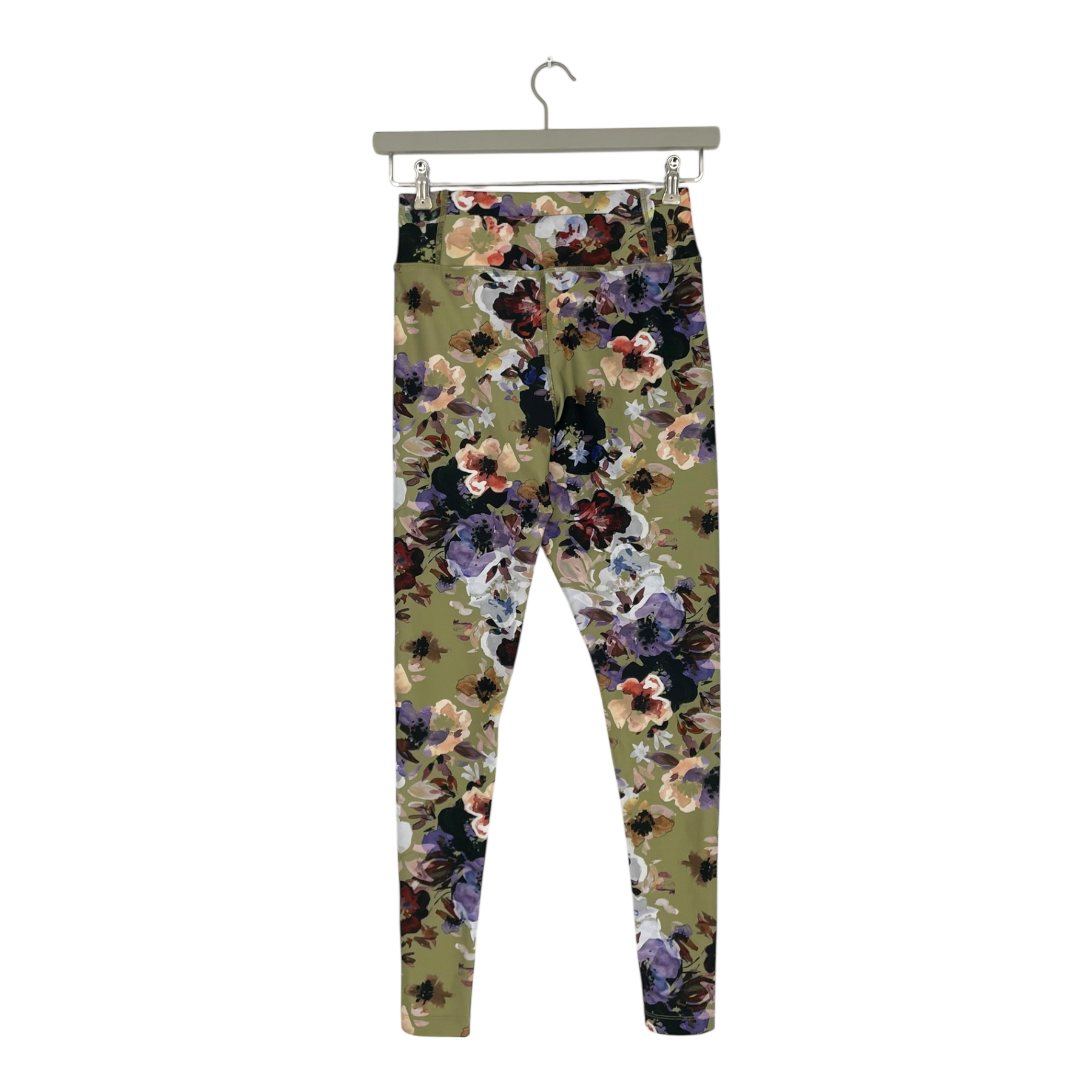 The pattern is Olive Anemone, where watercolor flowers sprawl on an olive green background. Active Tights training leotards are made of sturdy and flexible recycled polyester. The material is well suited for training, as it dries quickly and breathes.