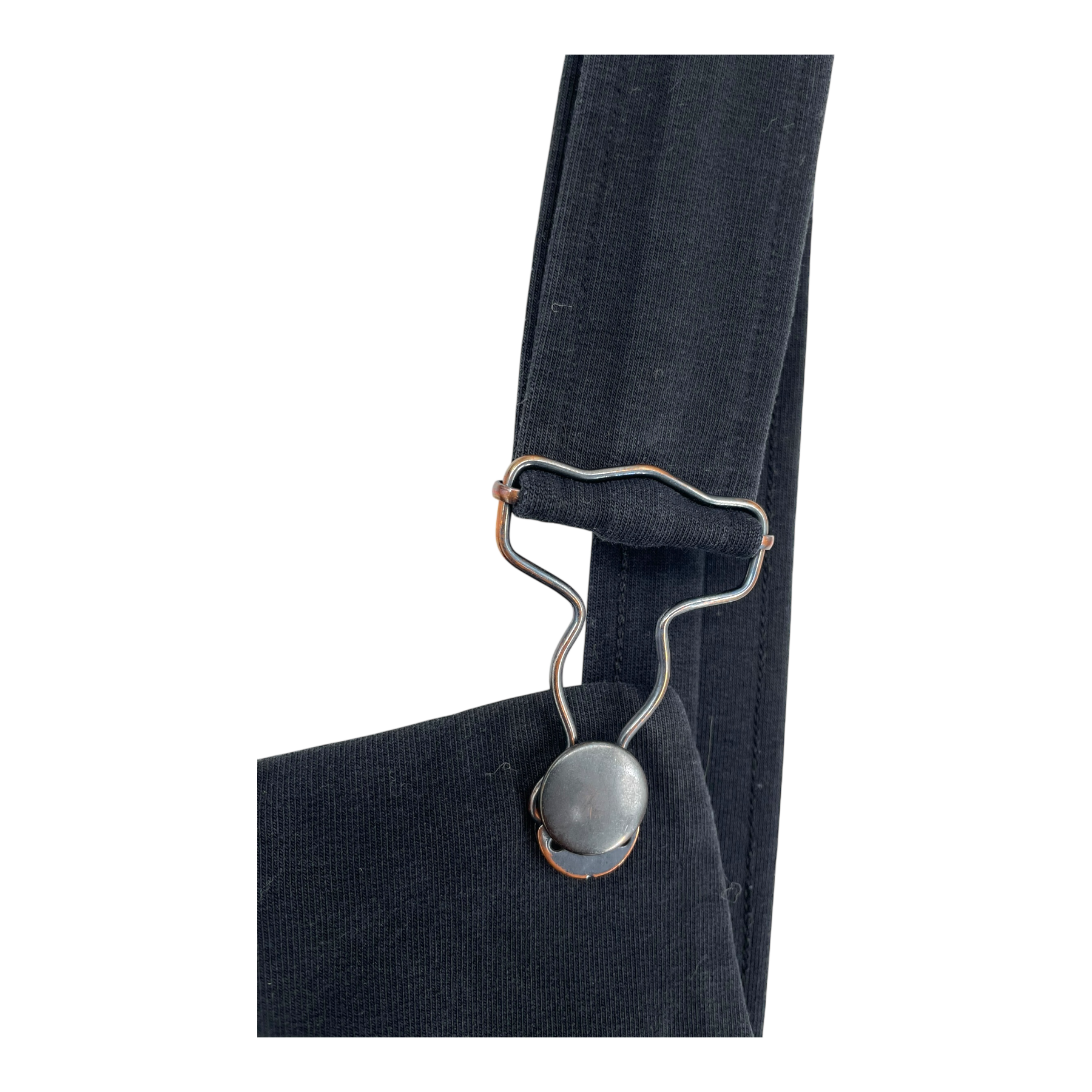Kaiko women's black overalls. The buttons and fasteners are slightly worn.
