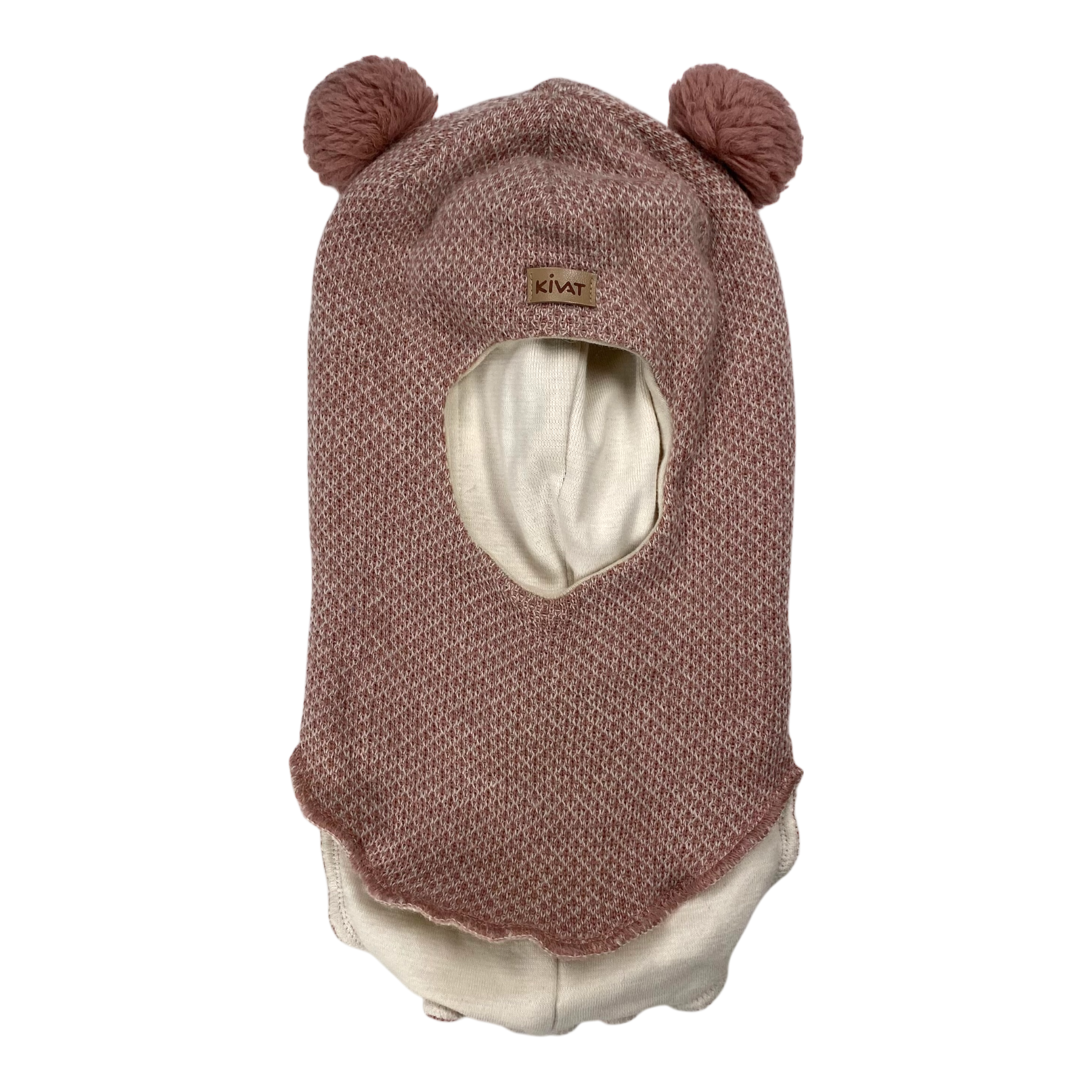 Kivat wool balaclava with two pompoms on top.