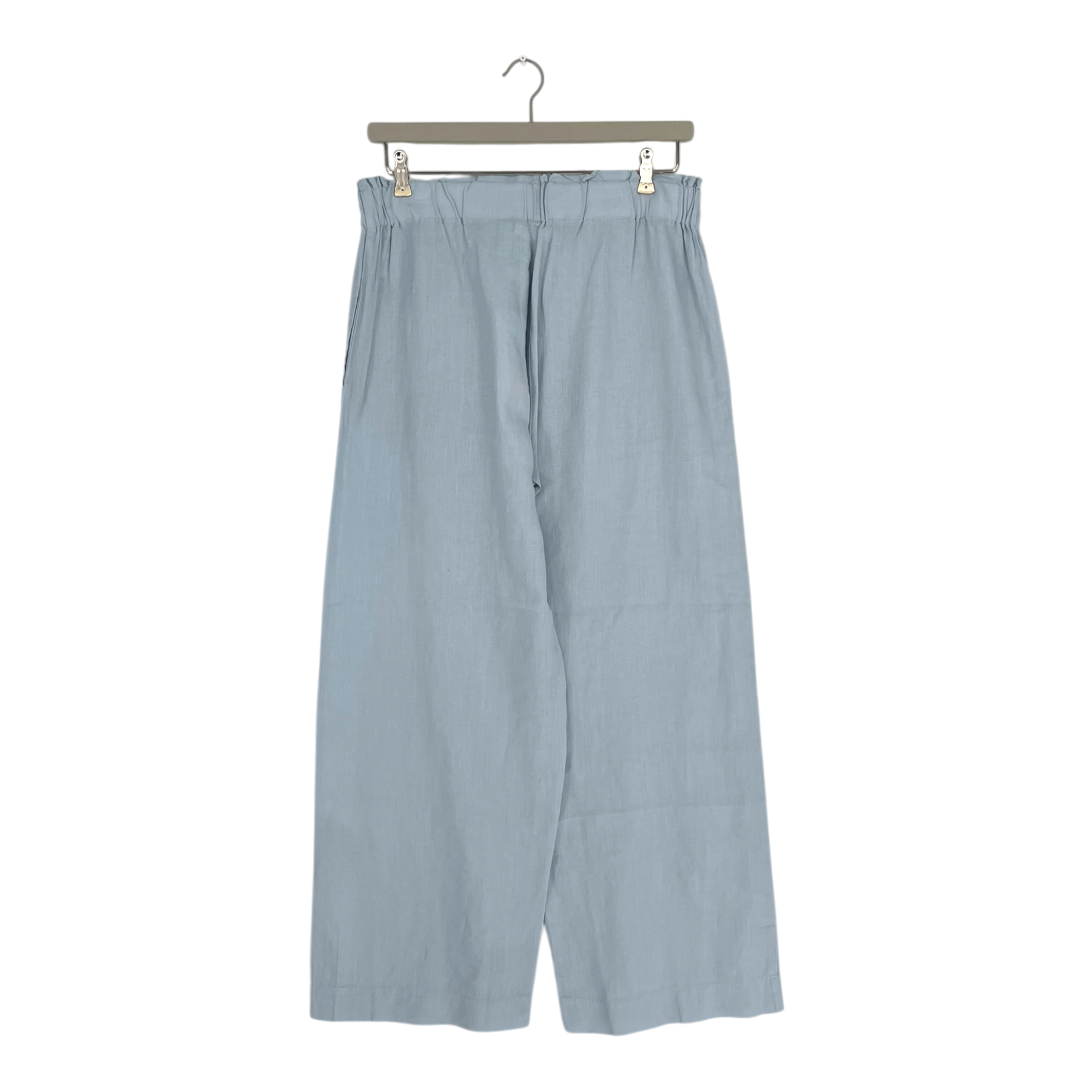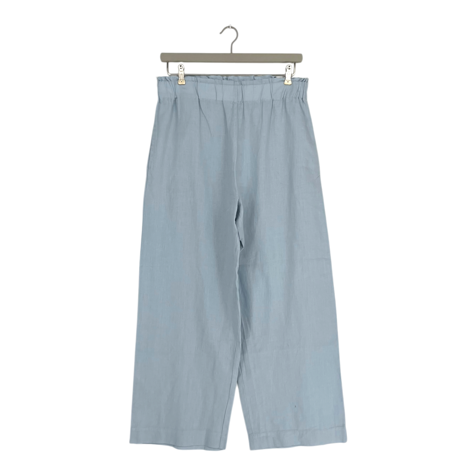 Jan 'n june beveren wide-leg linen pants with elastic waistband. Relaxed fit with flowing silhouette, perfect for warm weather. Features side seam pockets and comfortable high-rise waist.