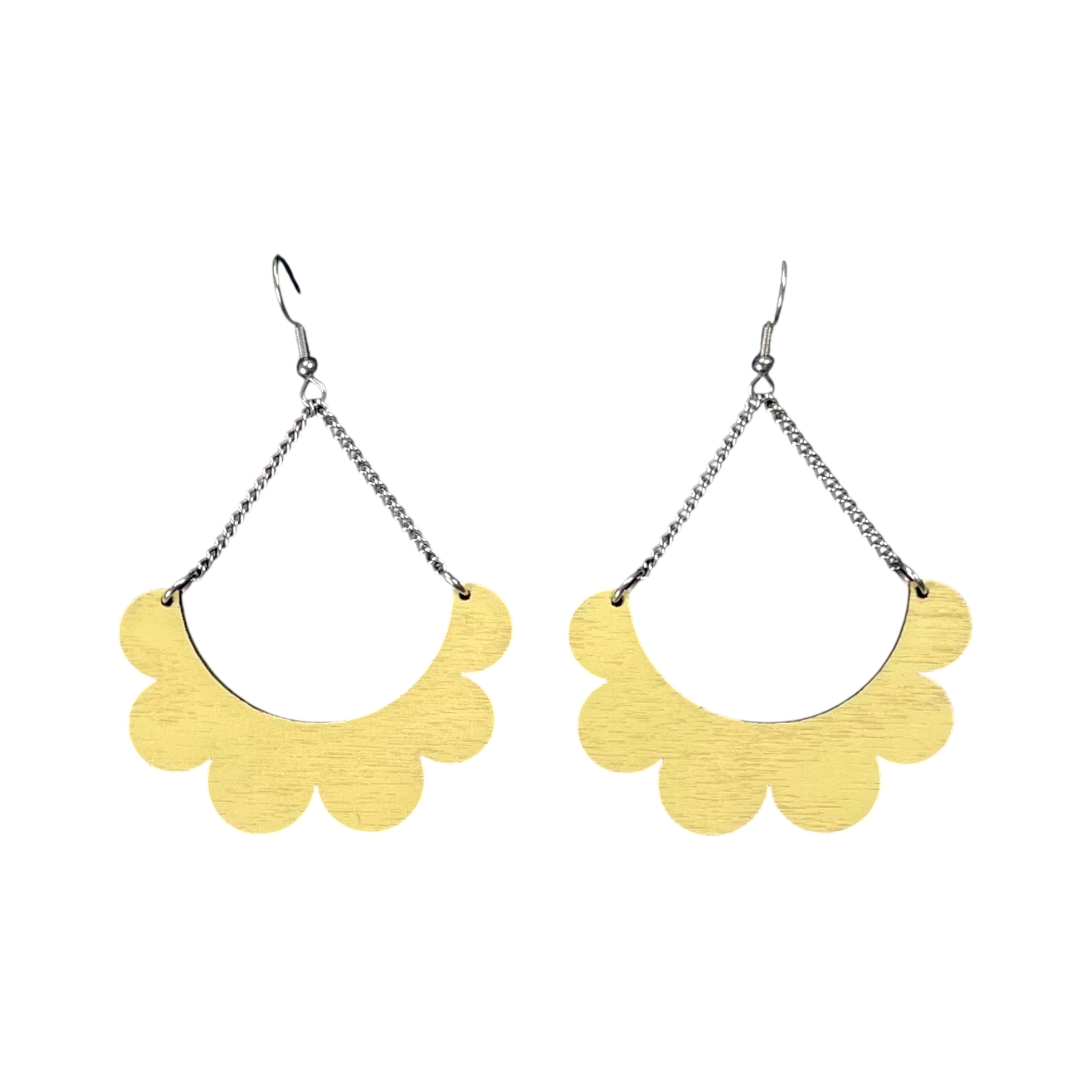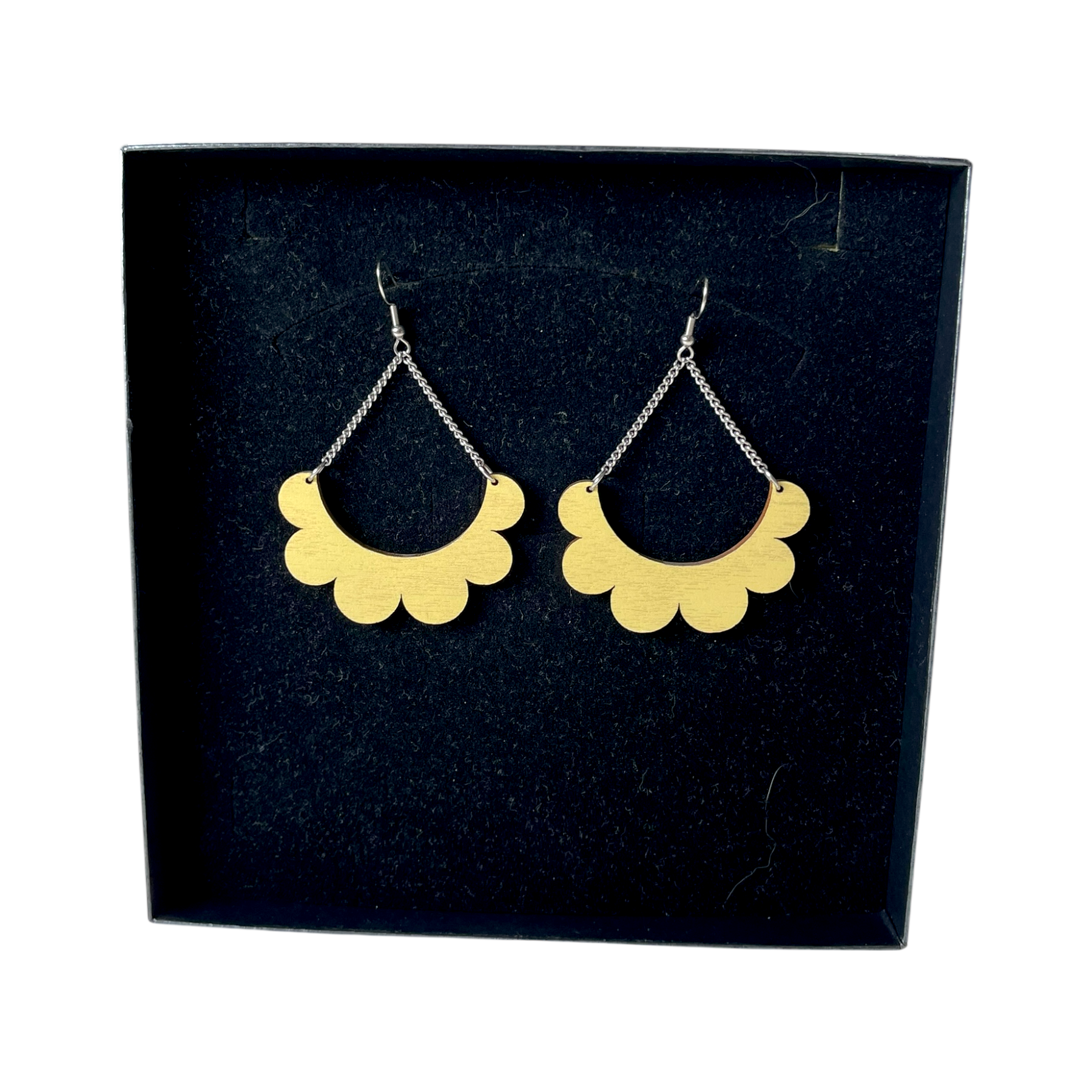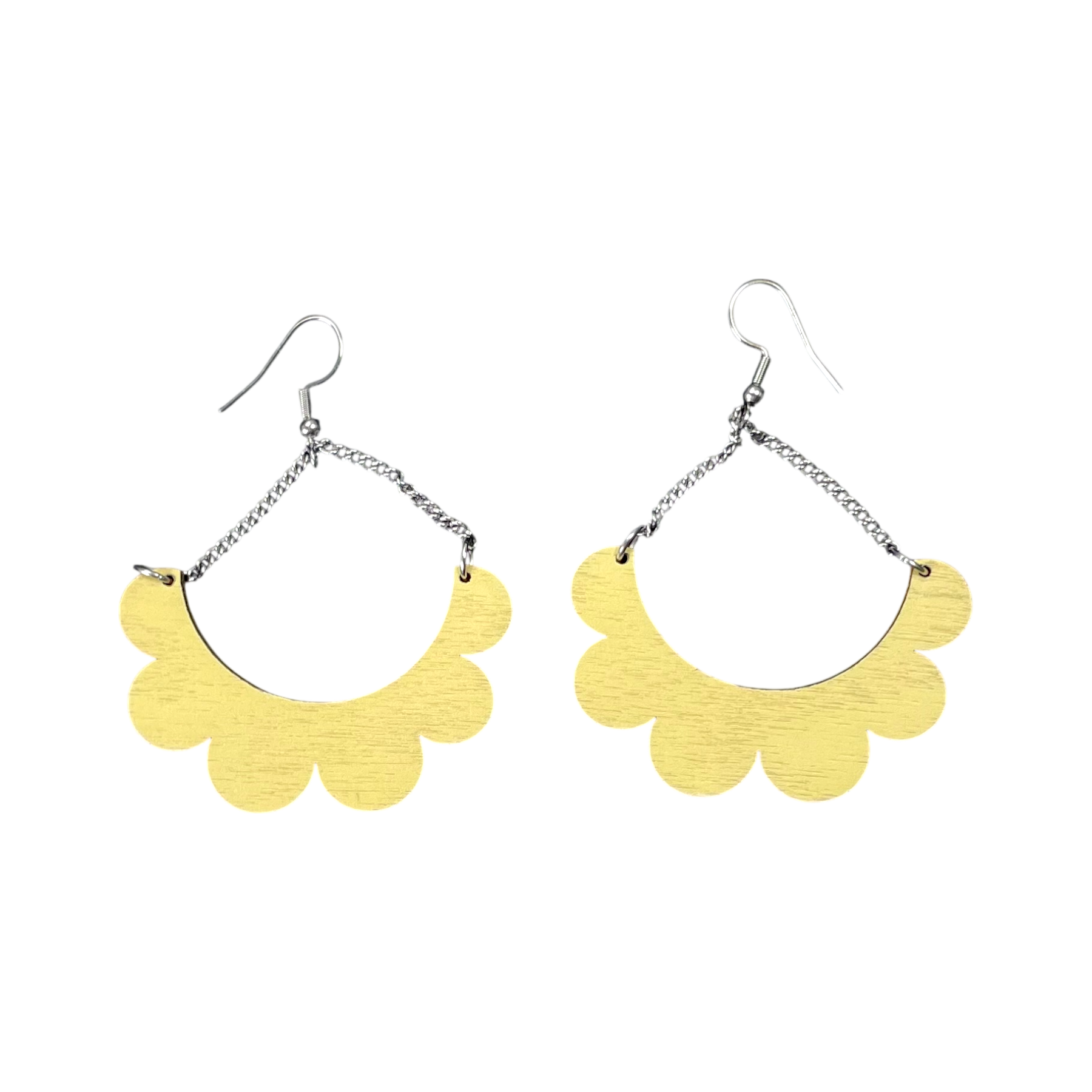 Maanantaimalli earrings in Kaarella model in lemon yellow.The width of the earring is about 5cm and length with the chain 7cm. The earrings come in their original box.