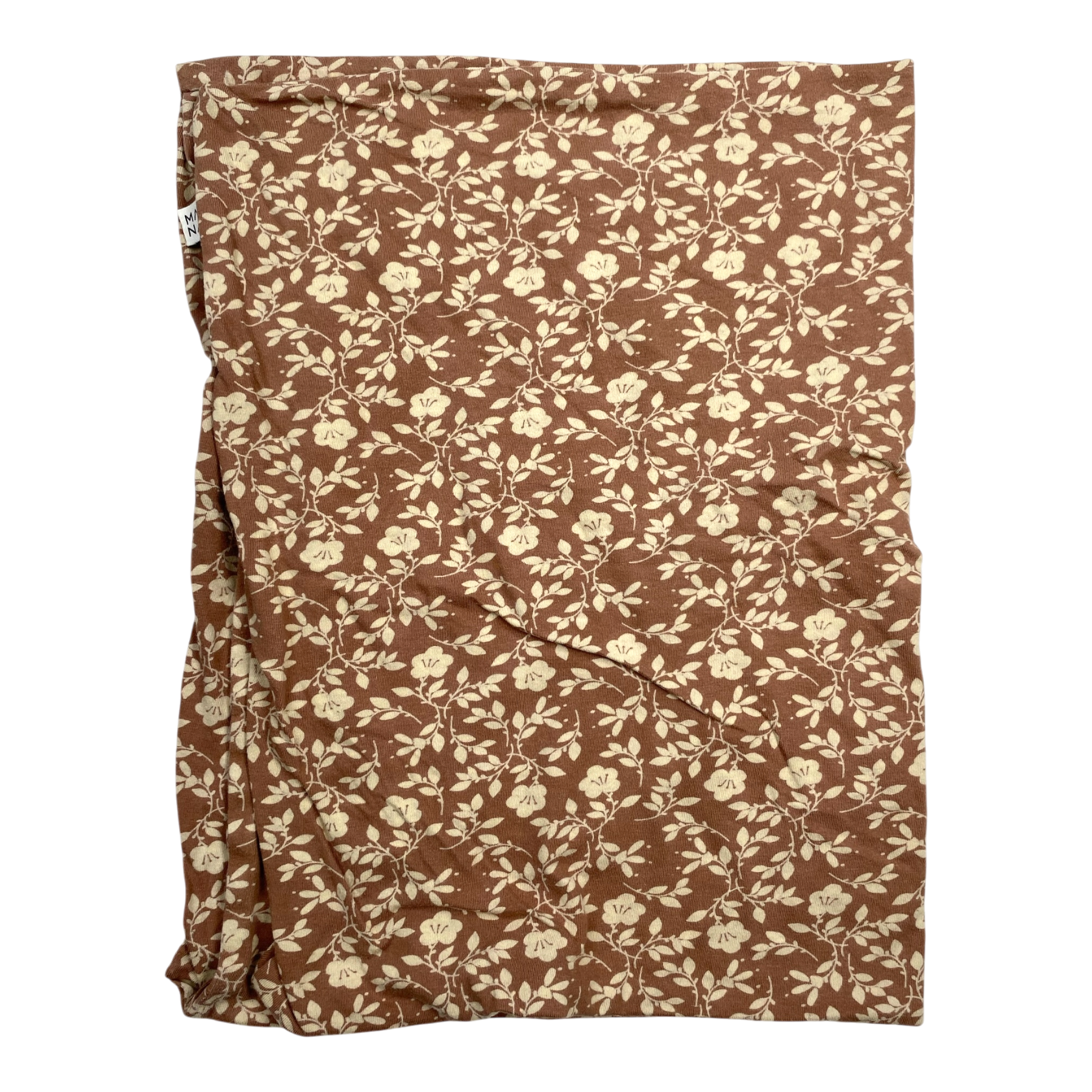 Mainio duvet cover set with a storage bag in flower print. The set has a pillowcase and a duvet cover. The material has slightly fluffed in use.