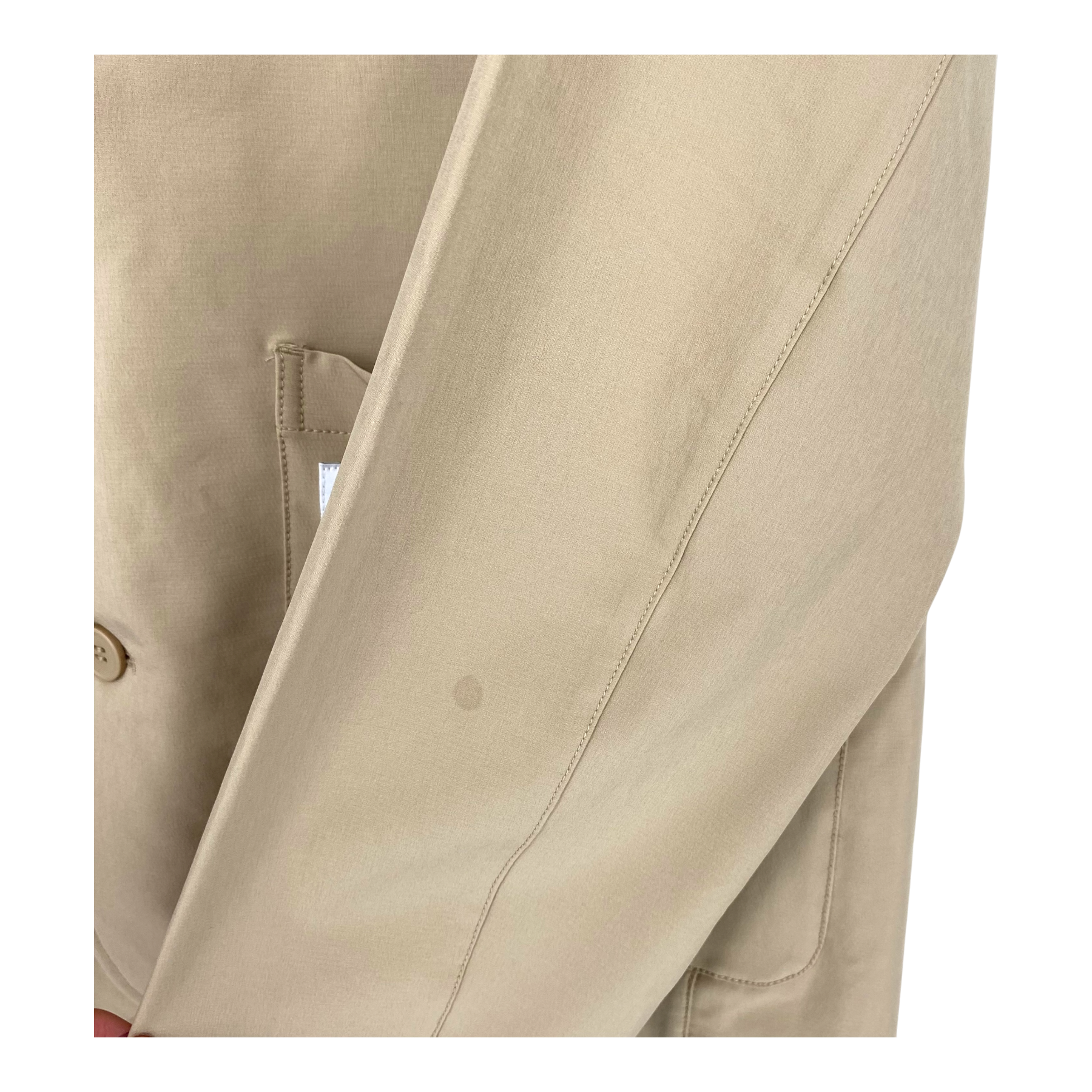 Makia men's Palisade jacket is made from lightly stretchy material and has two front pockets and a button closure in the front.