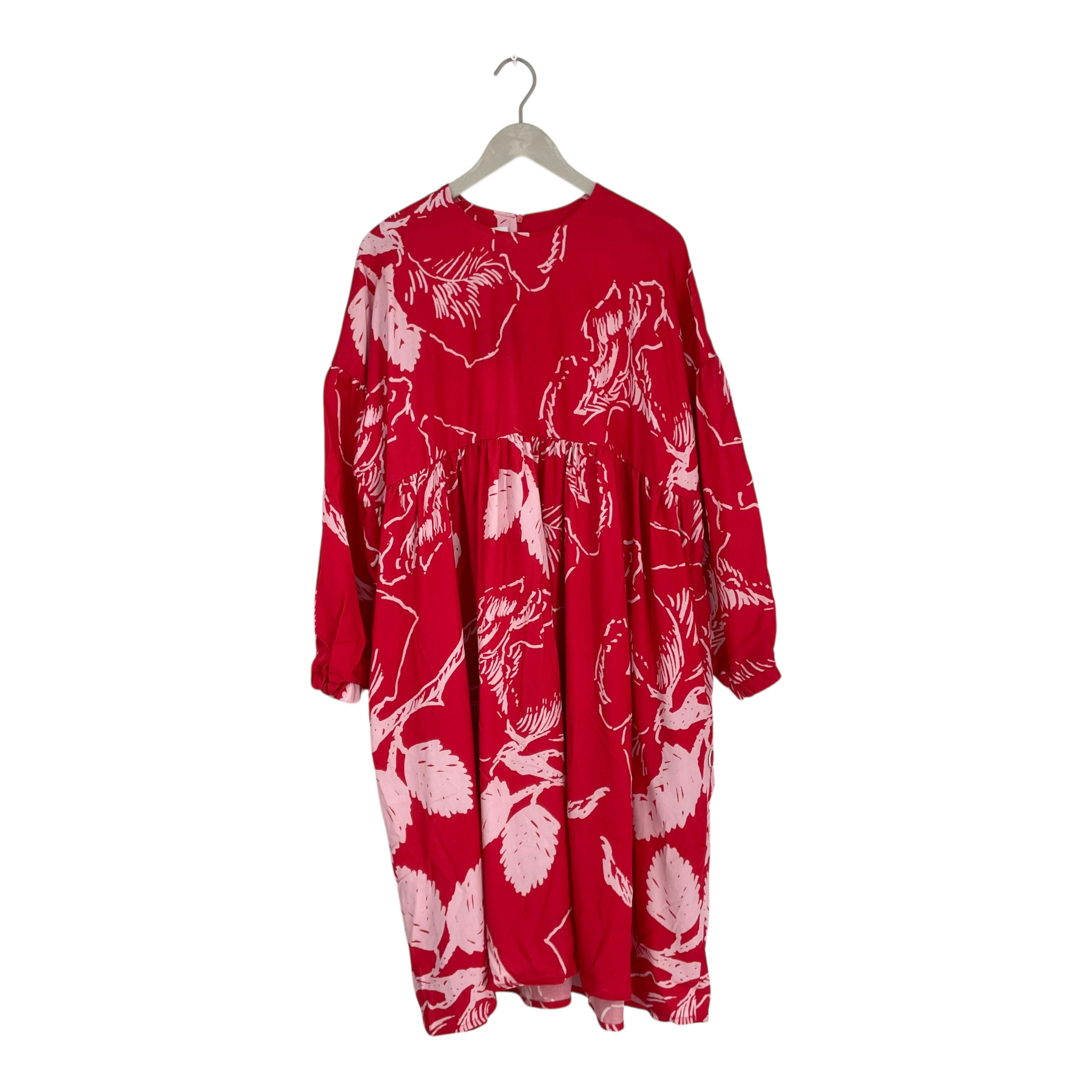 Makia x Moomin Bouquet dress is woven flowy dress with puff style long sleeves and with a scrunching on the waist.