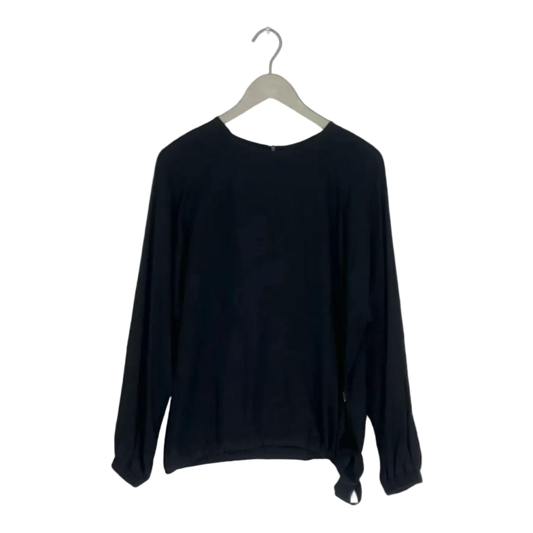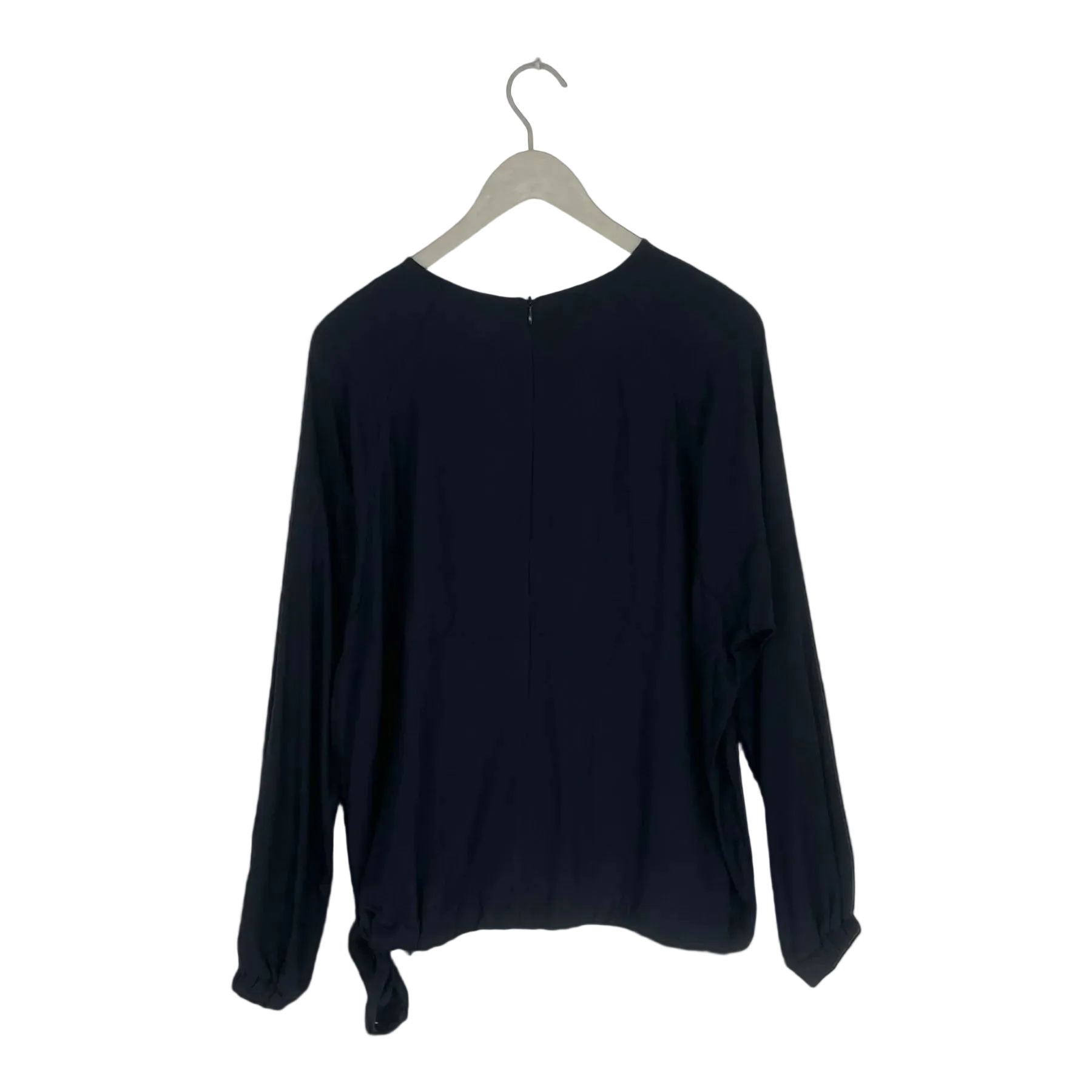 Makia women's shirt. The shirt has a fabric drawstring at the hem for adjusting the fit. There's a zipper at the back.