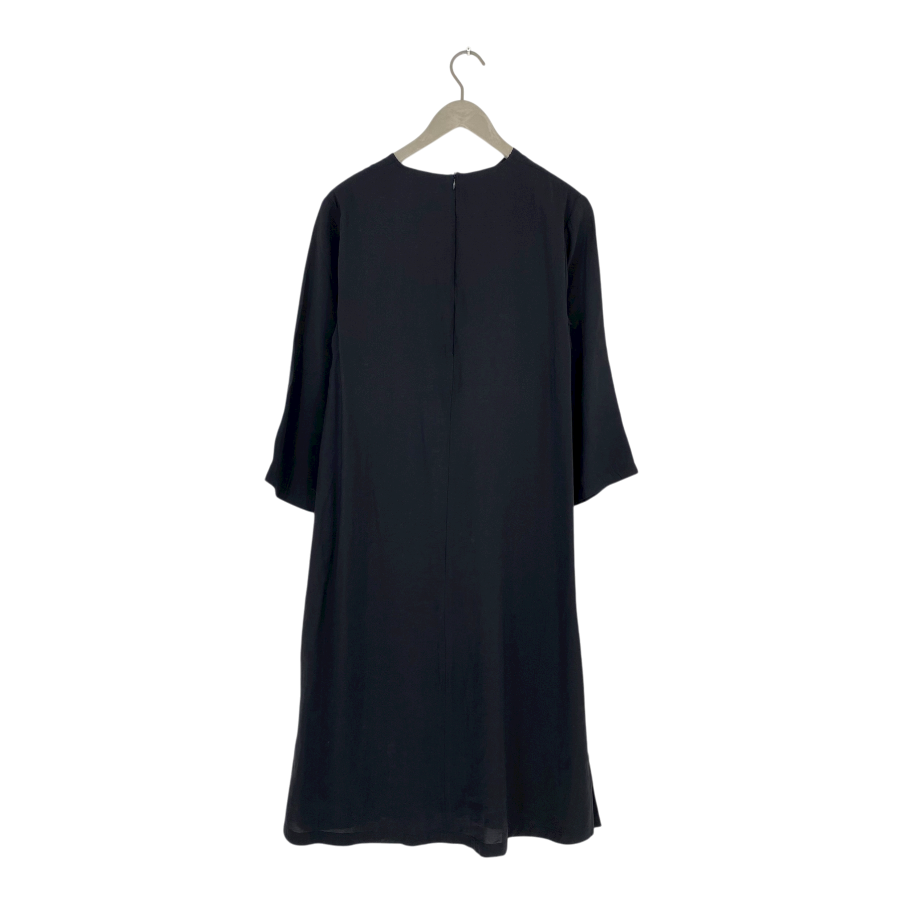 Makia woven flowy dress with 3/4 sleeves, small slit on the hemline and zipper closure on the back.