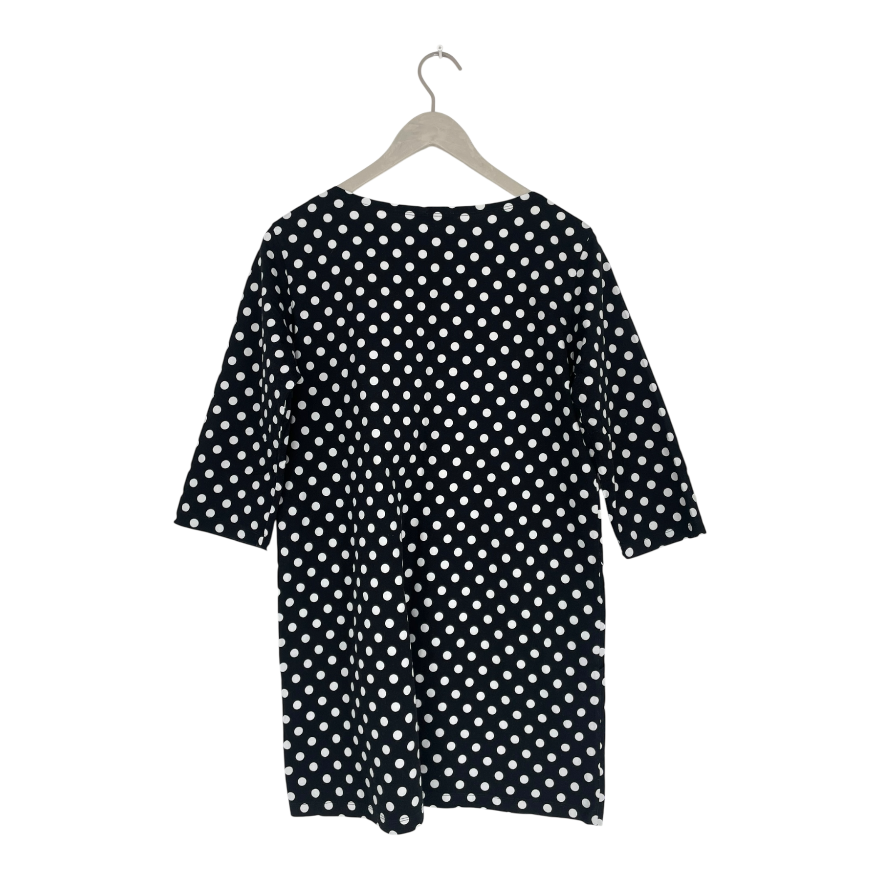 Marimekko 3/4 sleeve shirt in black and white dot print. Pockets on the sides.