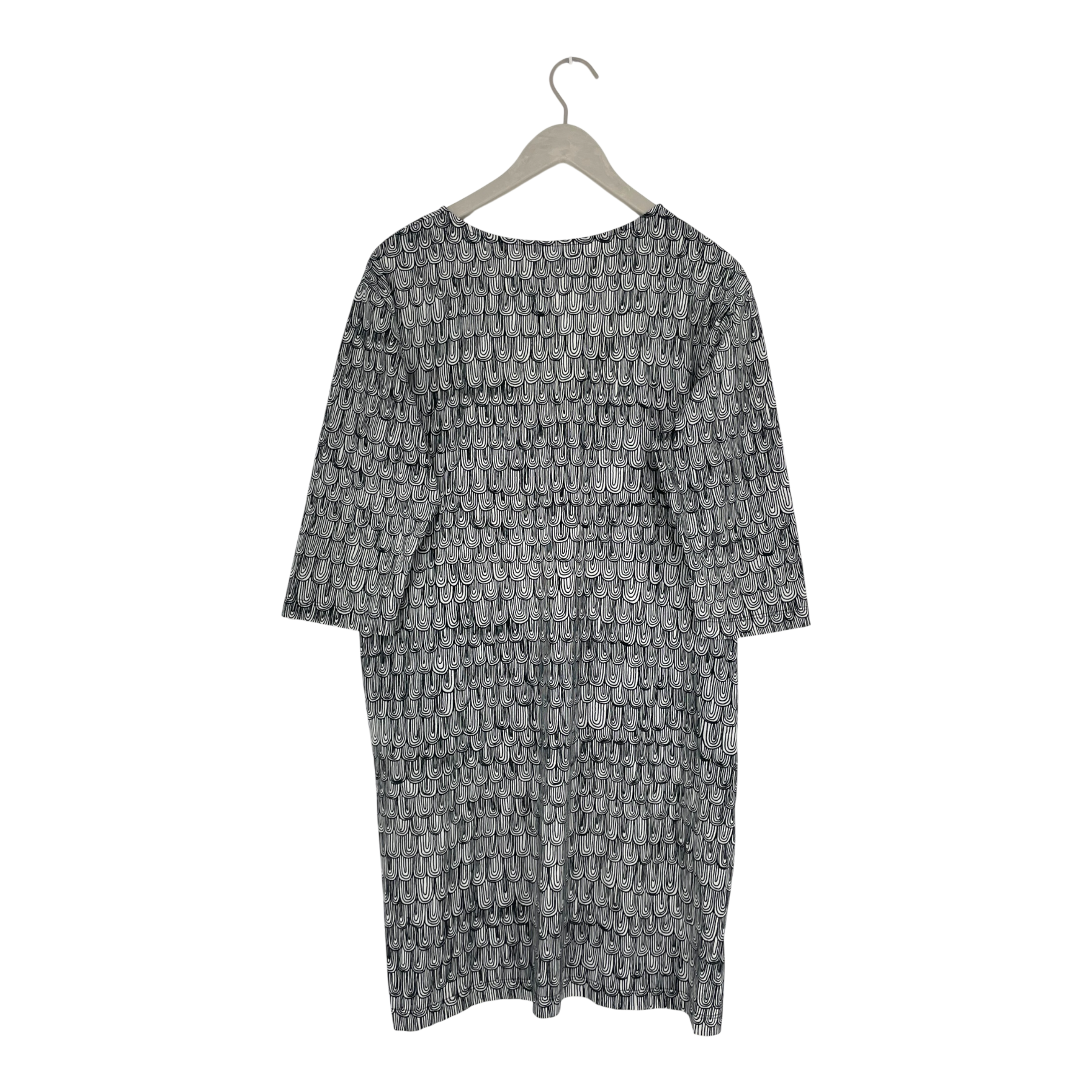 Marimekko Marjailla tricot dress with wide neckline and 3/4 sleeves in the Vellamo print.