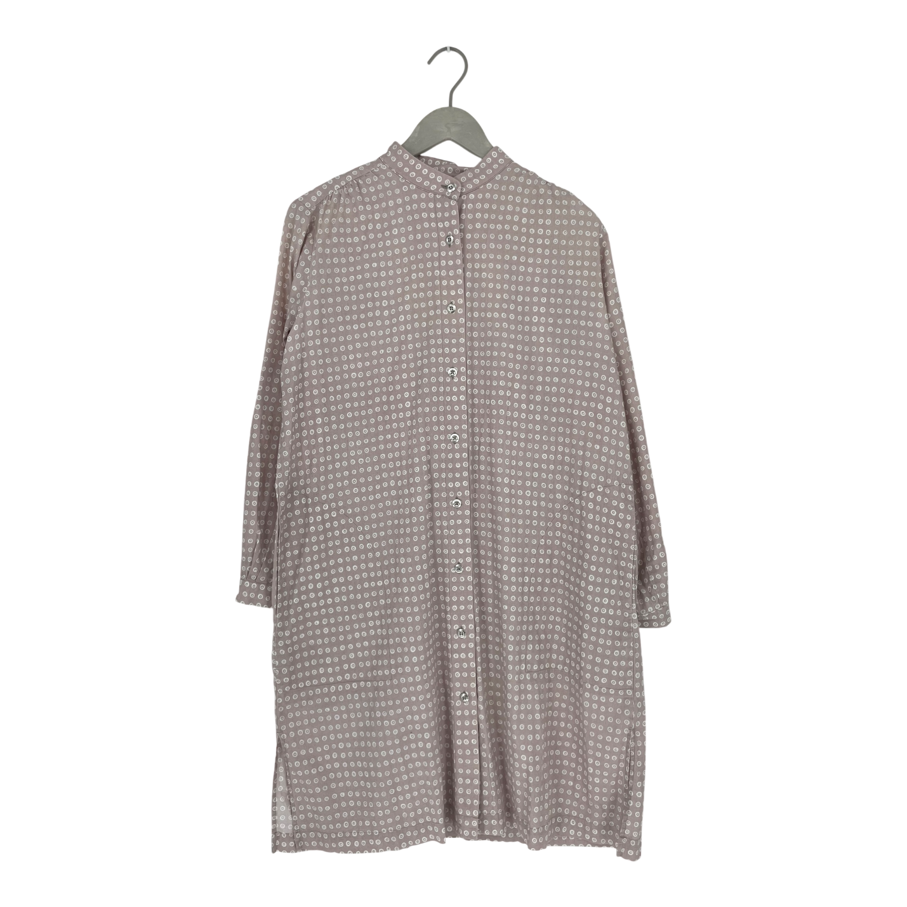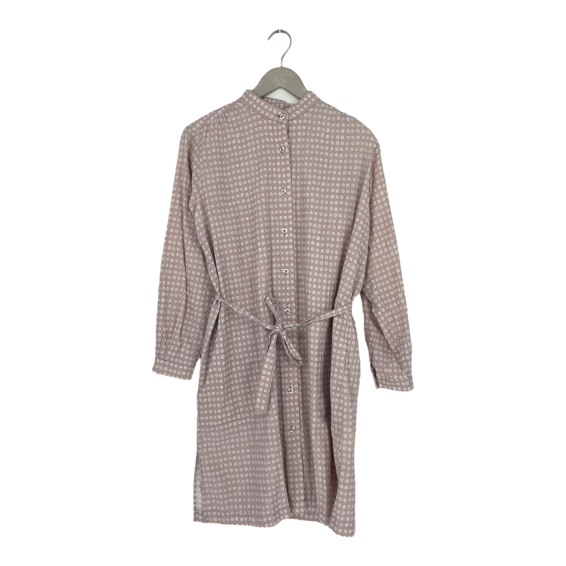 Marimekko Muori poplin dress with buttons on front, detachable fabric belt and Karakola polkadot print. Spare button included in the laundry tag.