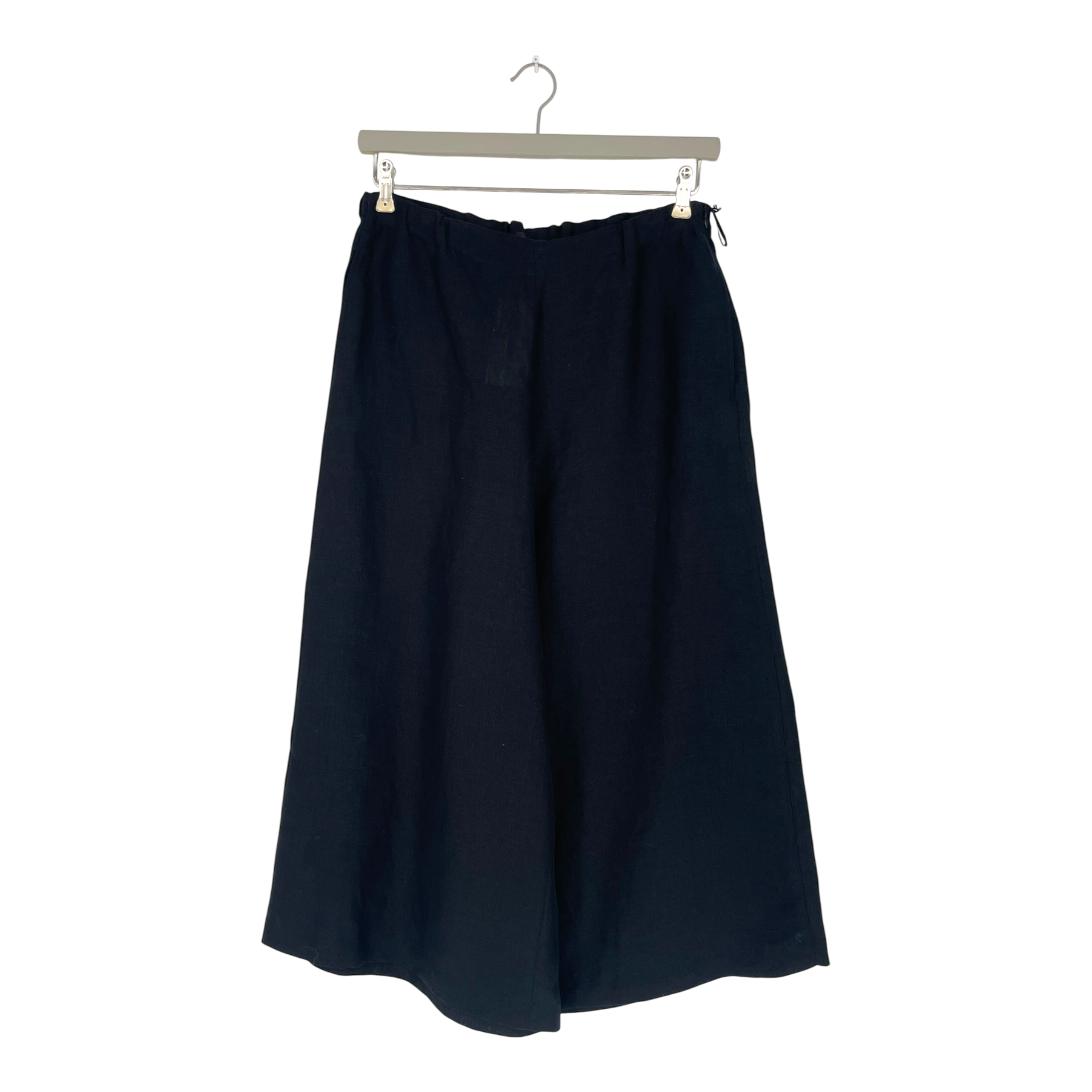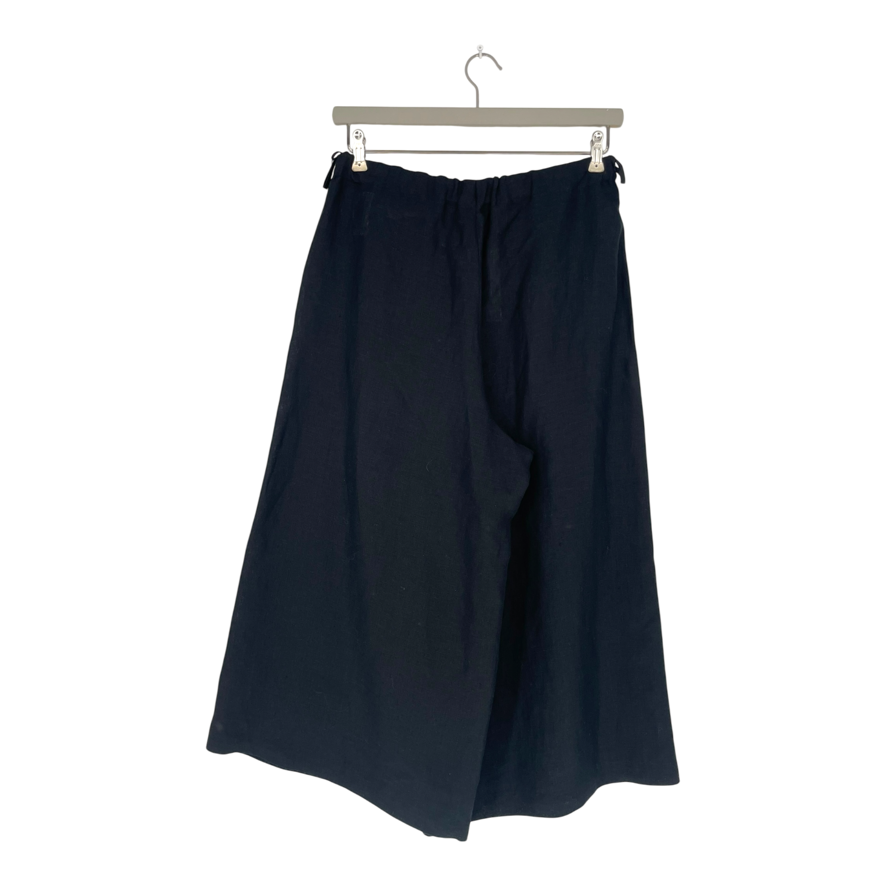 Marimekko Simana culottes in the color black (Sato Solid) with an elastic waistband and side seam pockets .The Marimekko size 42 corresponds approximately to women´s size L. Spare button included in the laundry tag.