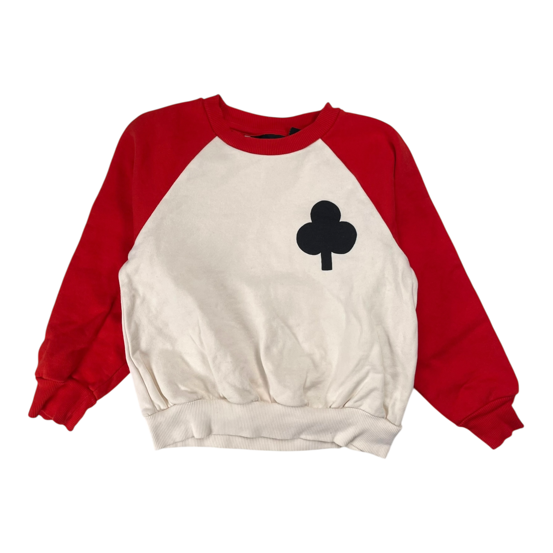 Mini Rodini sweatshirt with a club print with red sleeves.