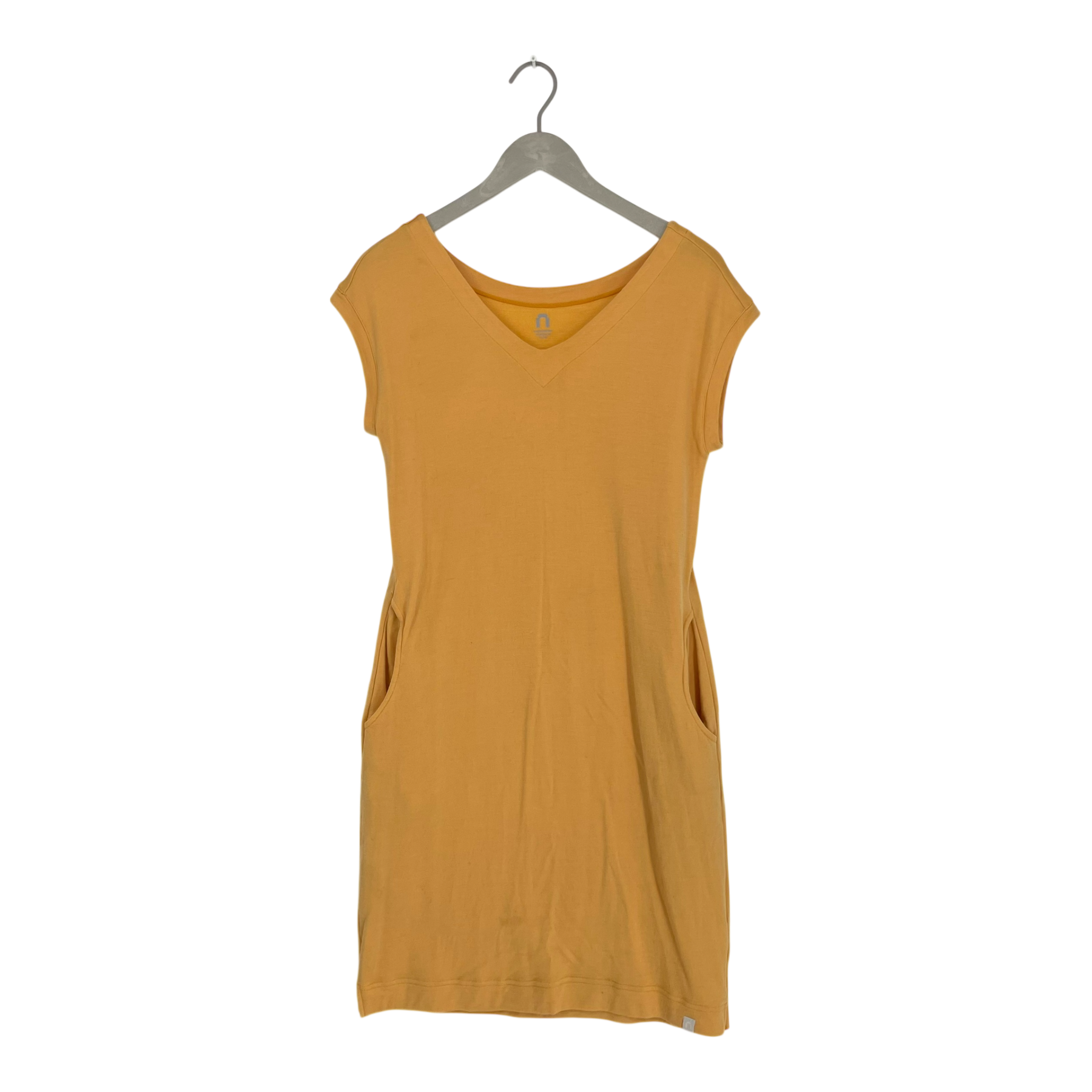 North Outdoor woman's short sleeve merino dress with a v-neck and pockets on the sides.
