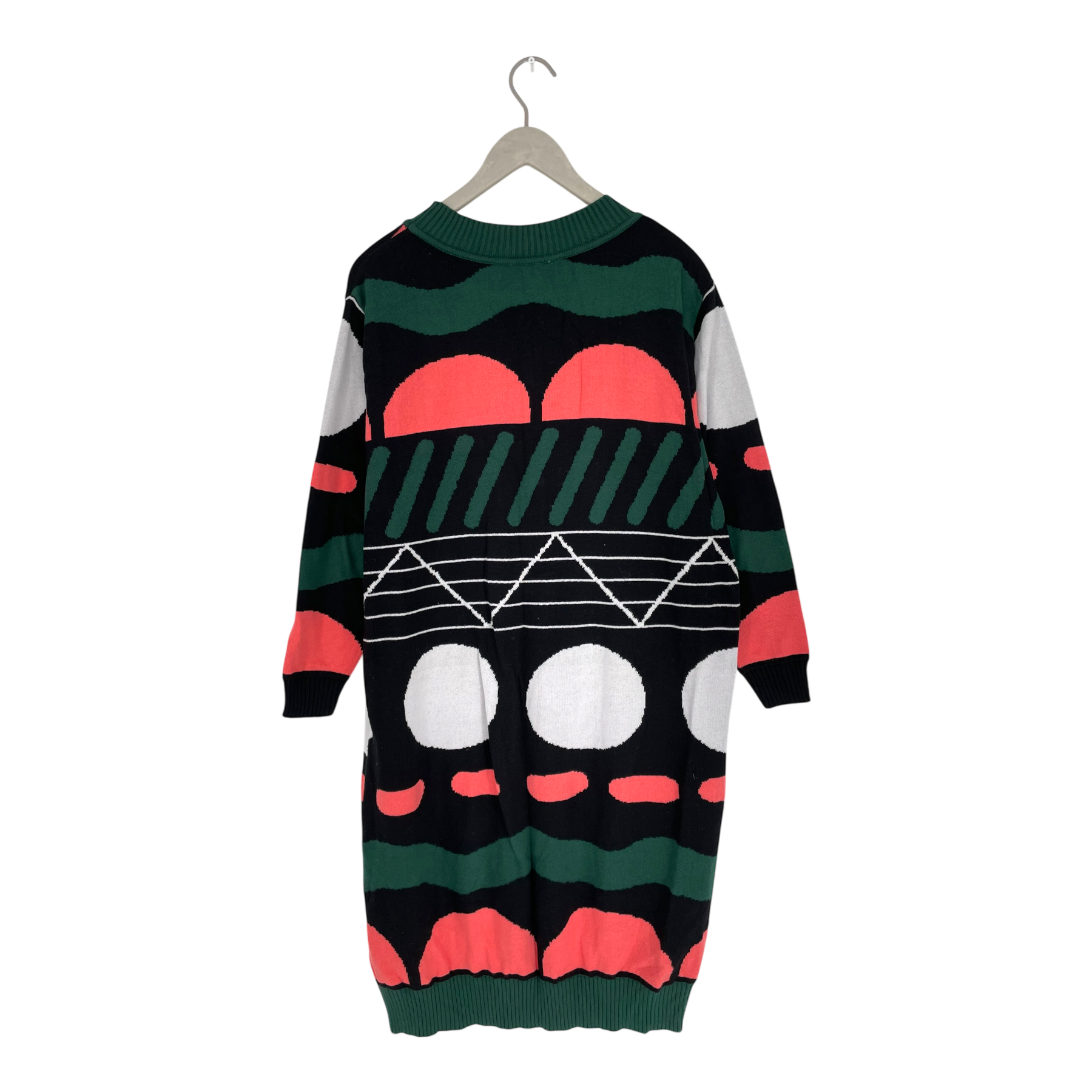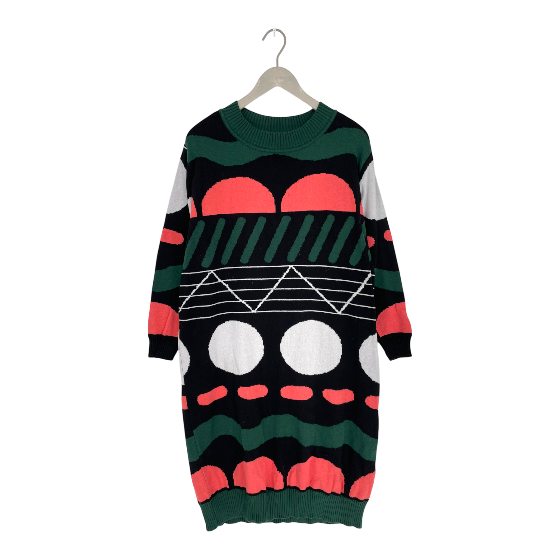Papu knit dress in Doodle print with round neck and long sleeves.
