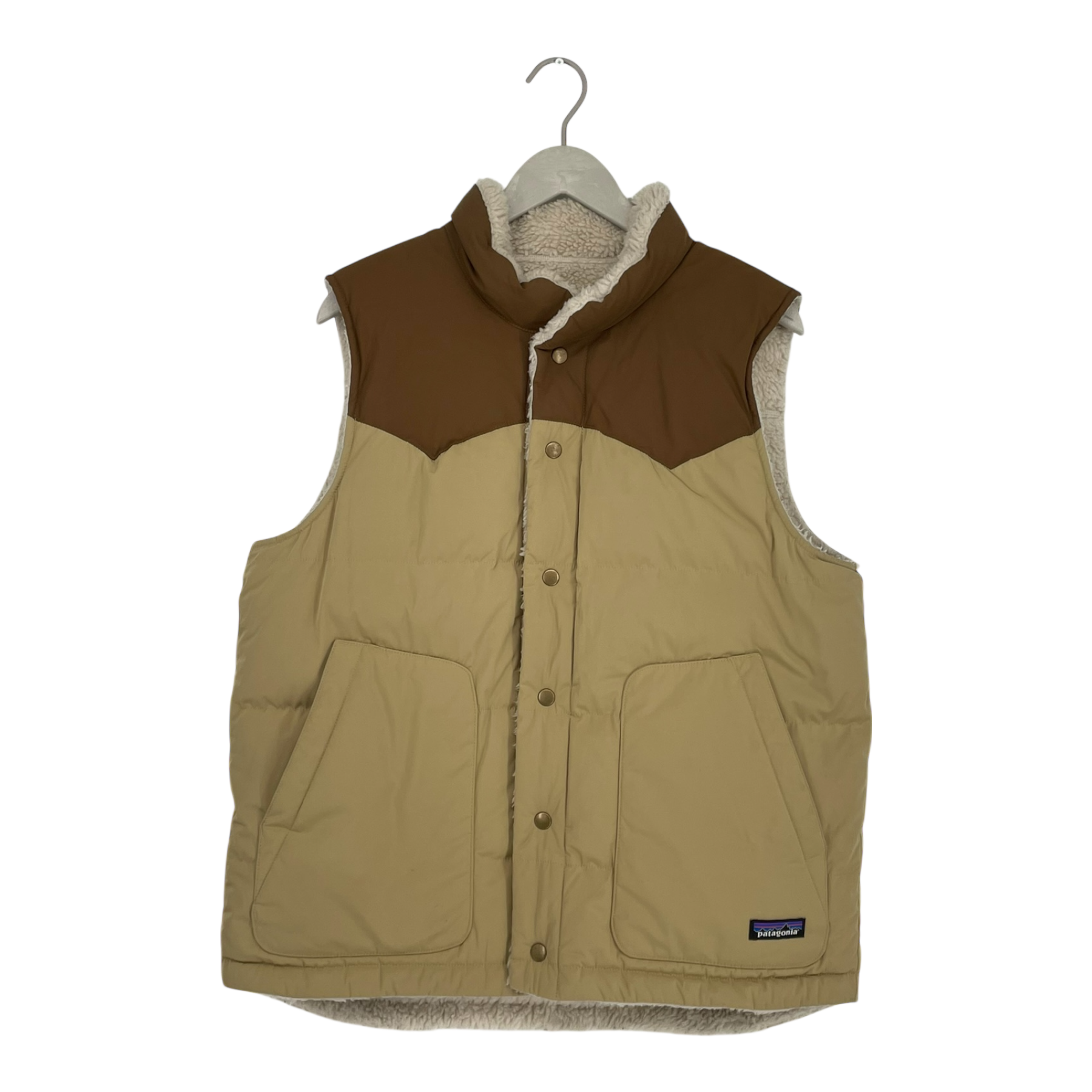Patagonia reversible bivy down vest, brown/beige | man M