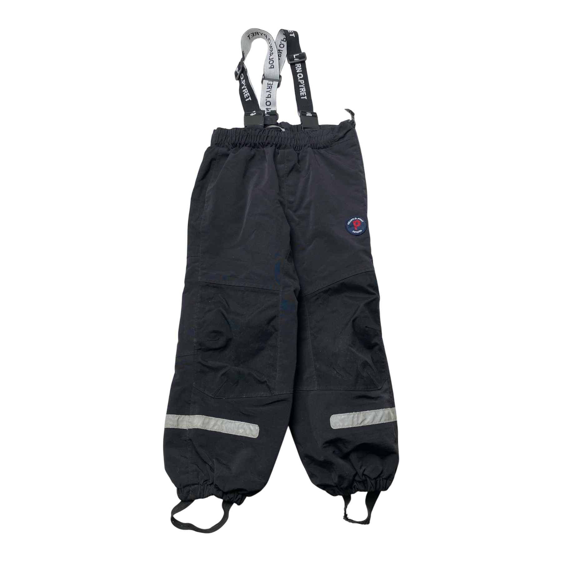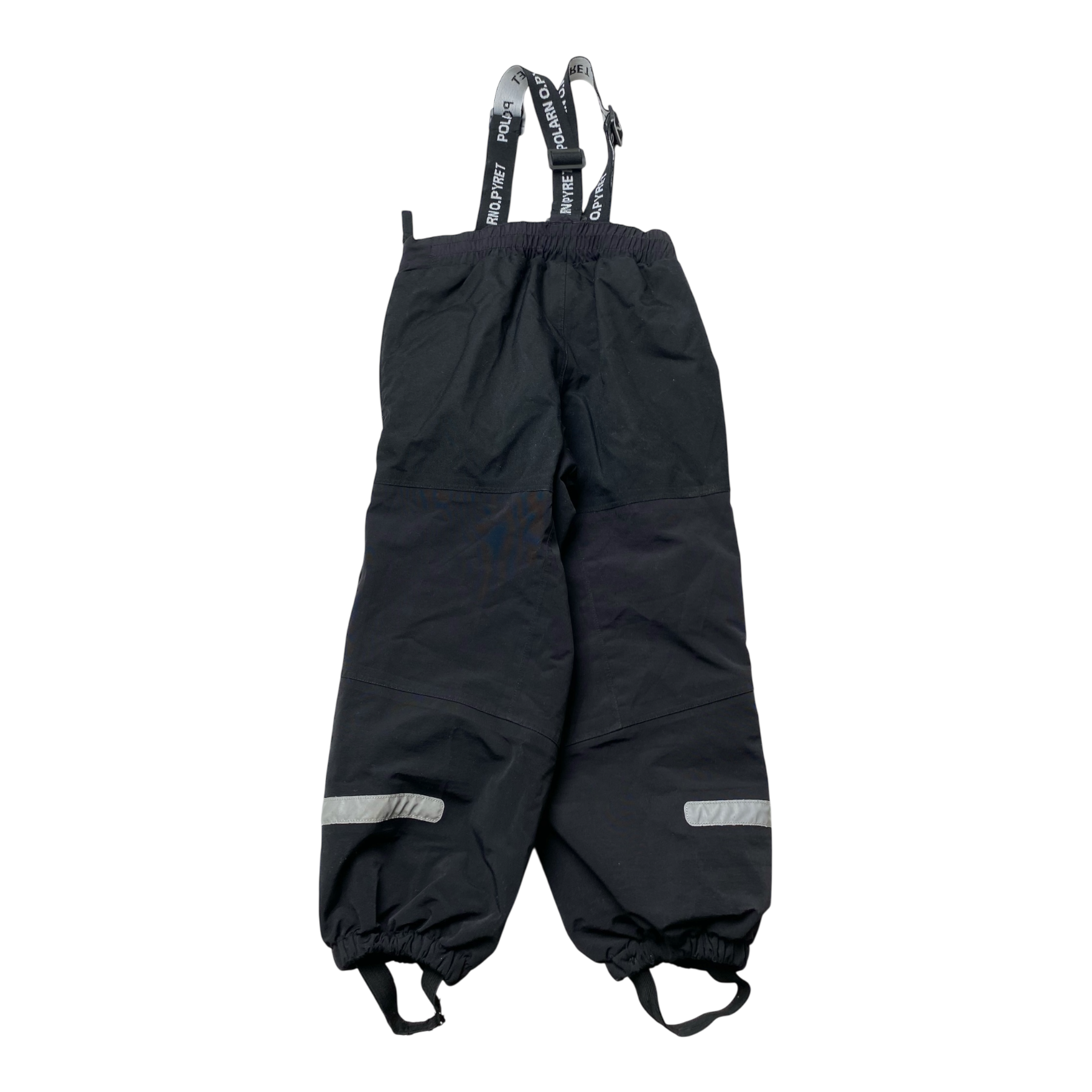 Polarn O. Pyret midseason outdoor pants with elasticated waistband, suspenders, reflectors and stirrups.